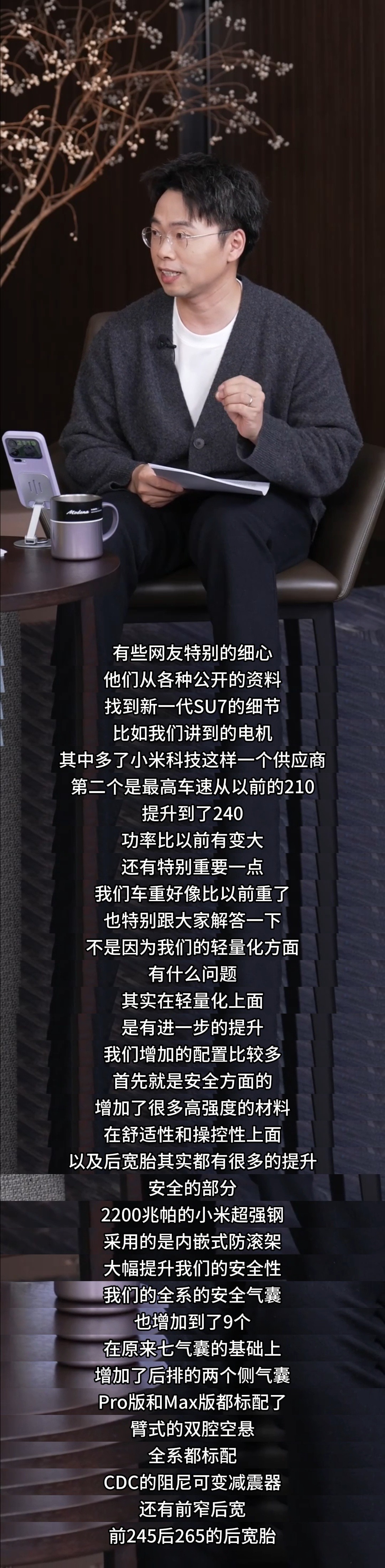 小米新SU7刷新24小时耐力挑战纪录凭借着高效的电动机,以及电池和电控系统的长时间稳定运行。新一代SU7 24小时耐力挑战赛成绩——4264公里。该成绩不但刷新了小鹏P7保持的3961公里纯电车耐力纪录,也较自家小米YU7创造的3944公里成绩实现自我突破。目前,新一代SU7已经开始预售,价格区间22.99-30.99万元。你们觉得怎么样?新能源汽车大v聊车