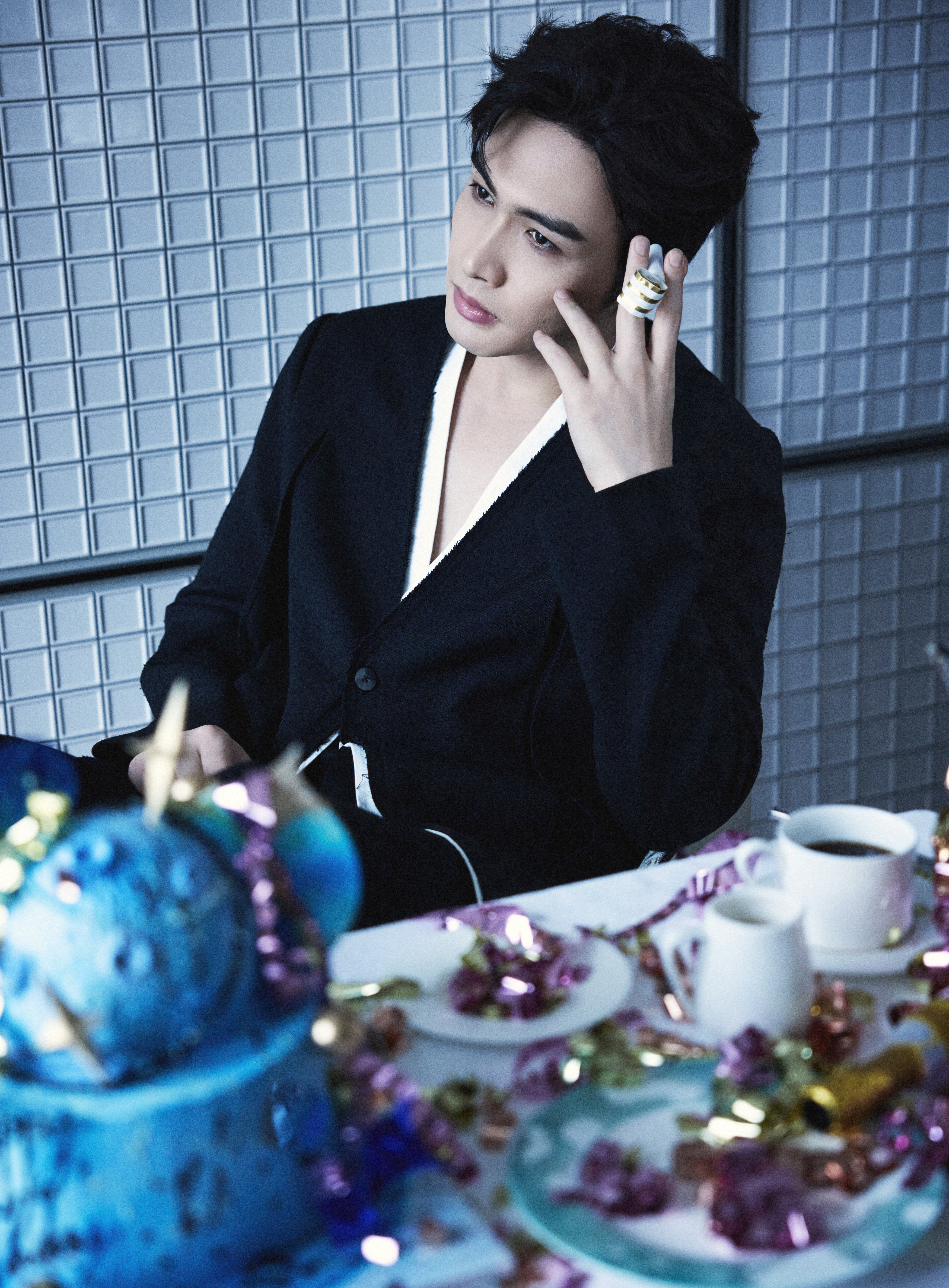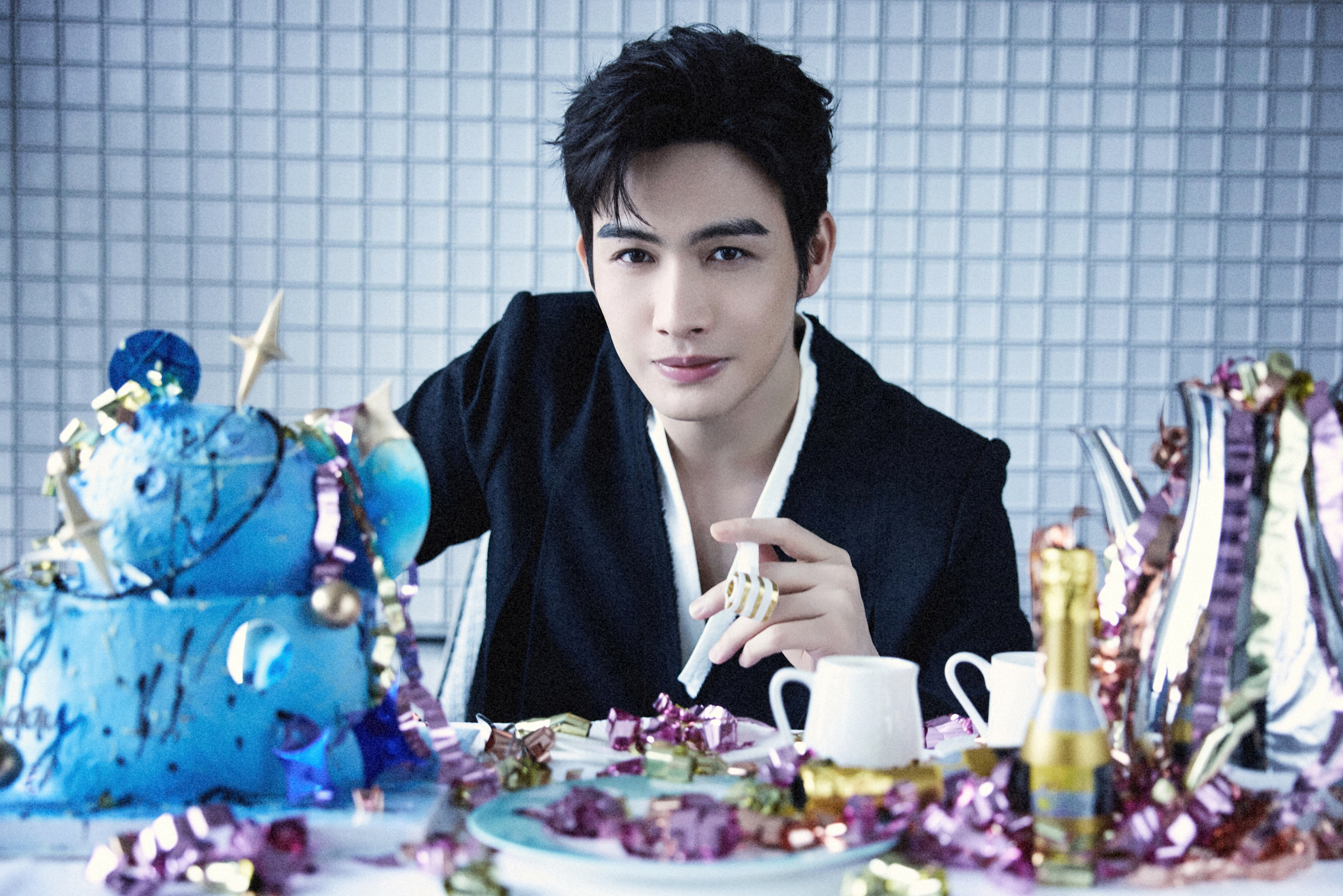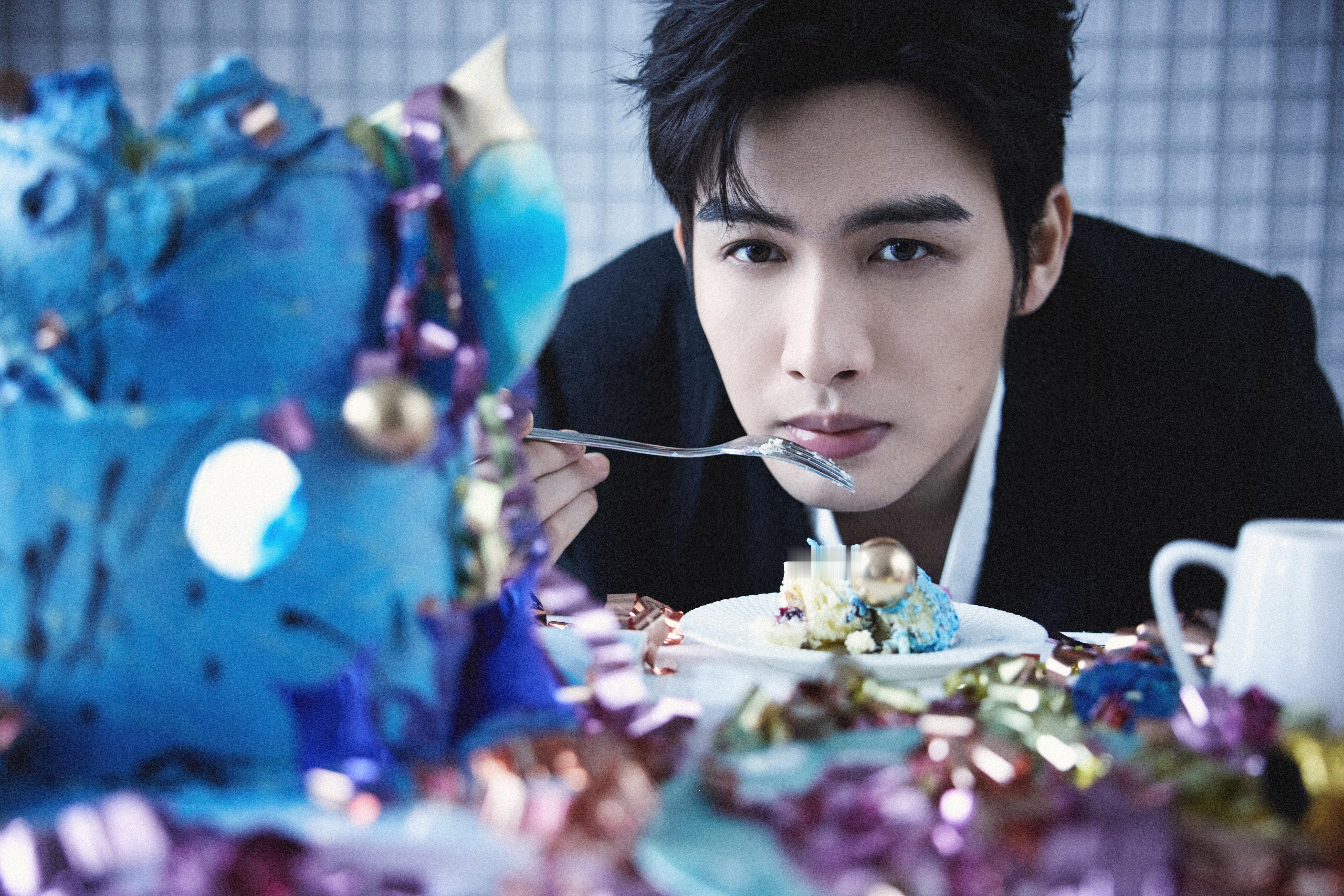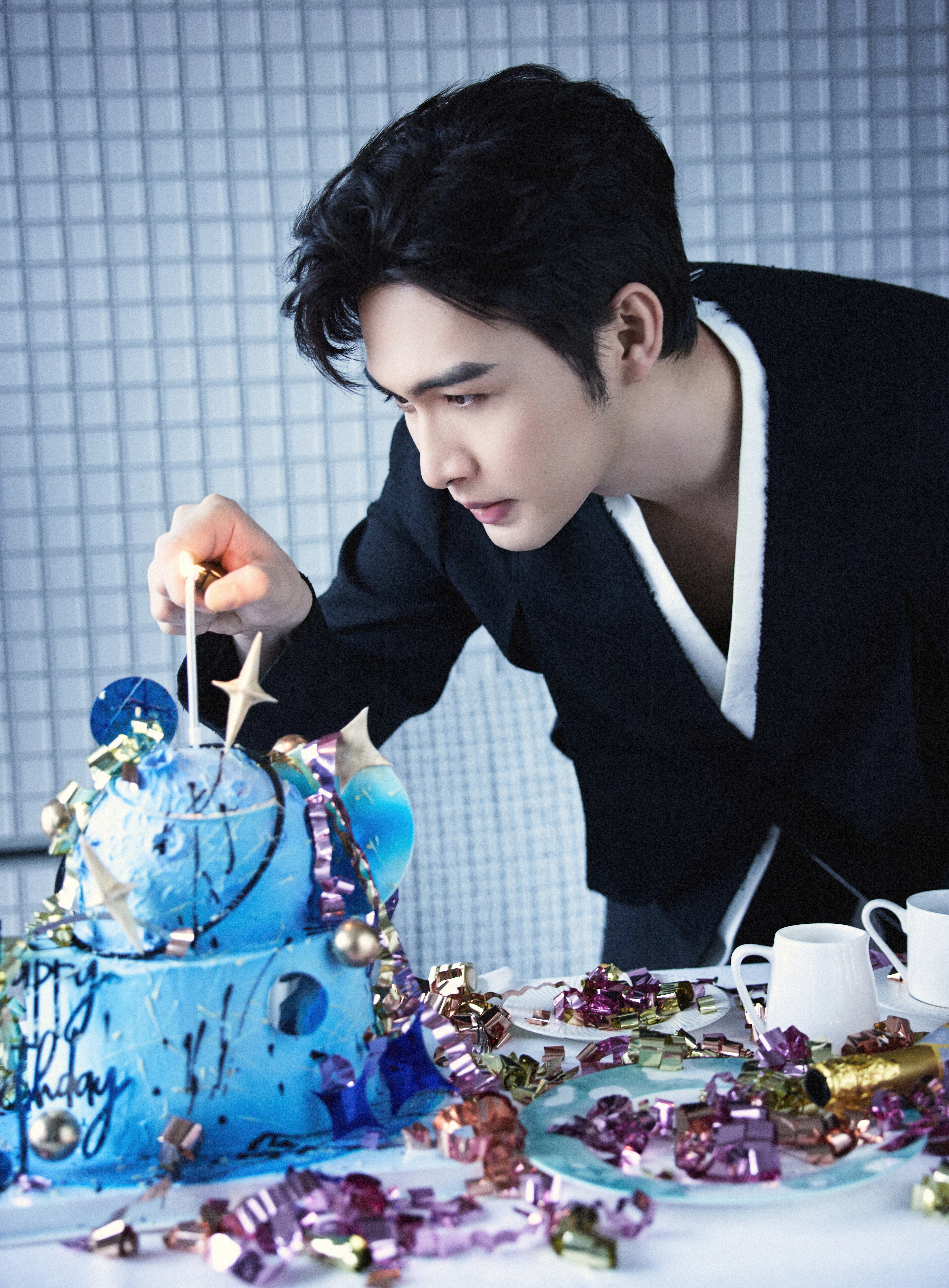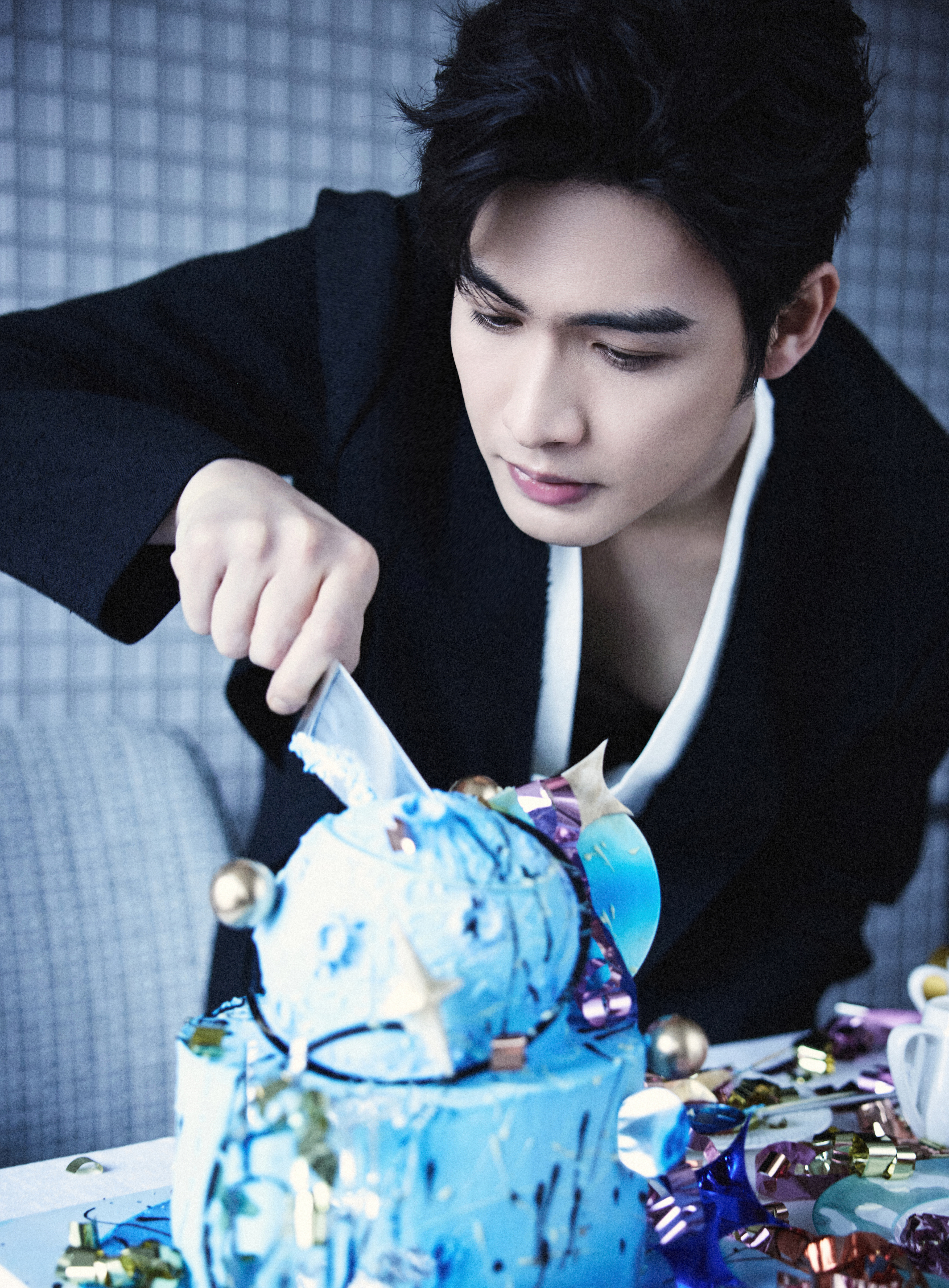张彬彬33岁生日写真张彬彬深V西装生日照 张彬彬33岁生日写真来啦,黑西装蓝色蛋