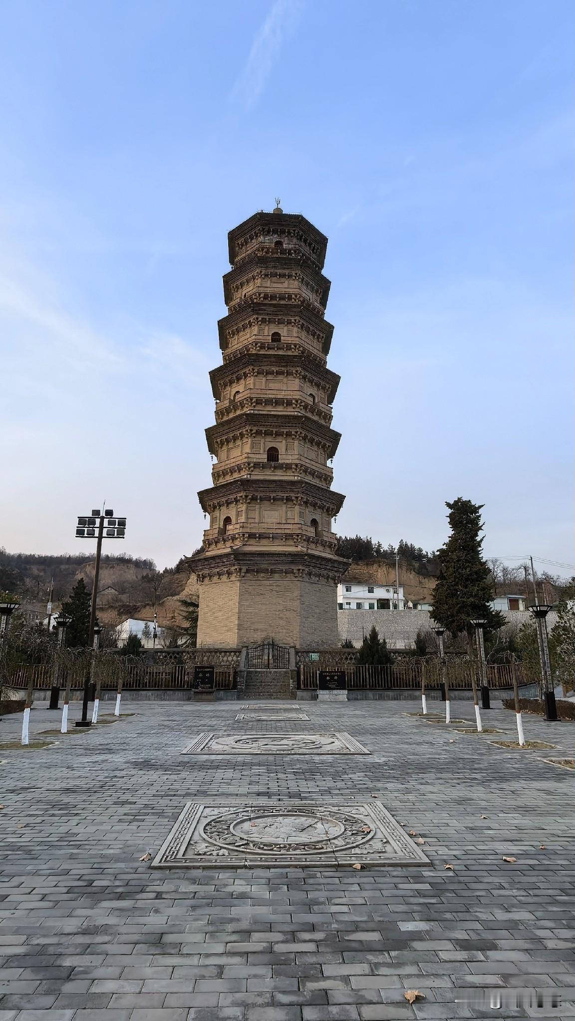 967岁高龄(始建于北宋嘉祐四年,即公元1059年)的泰塔,傲然屹立于旬邑县凤凰山脚下的泰塔文化广场中央。它作为旬邑县的标志性古老建筑,亦是一座极具传统文化色彩的风水塔,默默见证着旬邑县的历史变迁与文化发展。 “七层层、八楞楞,二十四个窟窿窿、五十六个风铃铃。”这句当地流传的话语,是人们对泰塔的由衷称颂。 泰塔呈八角形,为七层楼阁式砖石结构,高53米,底层直径达12米。塔内中空,设有木梯,可盘旋而上直达塔顶。每层塔身上,拱形门洞与长方形假门相间分布,八个角端均有石雕螭首,螭首口含铁环,环上系着风铃。从远处眺望,泰塔古朴壮观、雄伟挺拔;走近细观,其做工精细、灵巧雅致。 泰塔在建筑设计与营造方面,集唐宋建筑技术与艺术风格之大成,具有较高的历史和艺术价值。2001年6月25日,它被国务院公布为第五批全国重点文物保护单位。