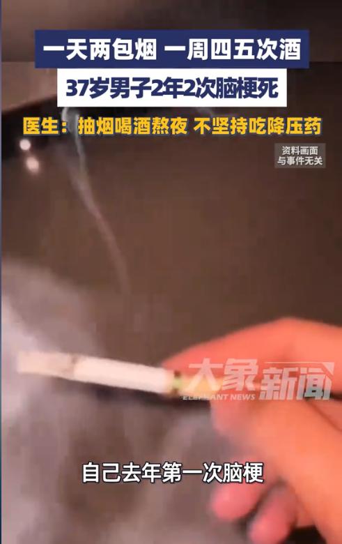 “悲剧还是发生了!”近日,河南郑州,一37岁男子正打着电话时突然右侧肢体瘫痪、言语不清,倒地不起,被紧急送医后确诊为脑梗死。而两年前男子也曾发生过一次,但当时抢救后以为已无大碍,谁料竟再次发病。网友:年纪轻轻怎么就两年两次脑梗死? 如今不少年轻人仗着身体底子好,把抽烟、喝酒、熬夜当成生活常态,却没意识到这些习惯正在悄悄透支健康,这位男子的遭遇就是最惨痛的教训。 据媒体1月18日报道,张先生本身有高血压病史,但他却从不规律服药,总是敷衍了事,想起来就喝,想不起来就算了。日常更是烟不离手、酒不离口——一天要抽两包烟,一周有四五天都在喝酒,还经常熬夜到凌晨。 两年前的一天他突发脑梗死,当时医生就反复叮嘱他戒烟戒酒、按时吃降压药,但他并未放在心上,依旧我行我素,觉得无所谓。这天他正和朋友打着电话突然就感觉右侧肢体不能动了、紧接着言语不清。 家人发现后赶紧送医抢救,好在最后脱离了生命危险。医生表示,张先生脑梗死复发与他长期不良习惯密切相关:抽烟会加速动脉硬化;酒精会导致血压剧烈波动,增加血管破裂风险;熬夜会引发内分泌紊乱、血液黏稠度升高;而高血压患者擅自停药,更是直接让血管长期处于高压状态,这些因素叠加,最终导致了悲剧的再次发生。 由此可见,健康从来不是理所当然的,尤其是有基础病的人群,一定要遵医嘱服药,远离烟酒、规律作息,别让一时的放纵变成终身的遗憾。网友表示,身体的透支是有代价的,年轻不是挥霍健康的资本。 信息来源:《