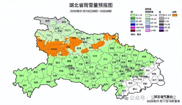 1月18日08时-19日08时,鄂东北东部、鄂东南多云到阴天;鄂西北、鄂东北西部阴天,晚上小雨转雨夹雪或小雪,部分地区有短时冻雨;其他地区阴天转小雨。最高气温鄂西北5~9℃、鄂东南18~22℃、其他地区10~17℃,最低气温北部-1~3℃、南部3~8℃,偏北风2到3级转3到4级、阵风5到7级。
