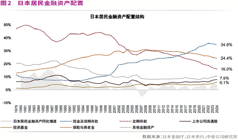 此外,基于居民风险偏好的提升带动的居民资金入市是一个缓慢的过程。中金公司认为,直到2023—2024年,受益于日本房价上行,以及“春斗”下日本工资更快地上涨,居民资产负债表以及未来预期得到快速改善,才推动日本居民风险偏好快速提升,居民配置股票、基金的比例较为明显地增加。