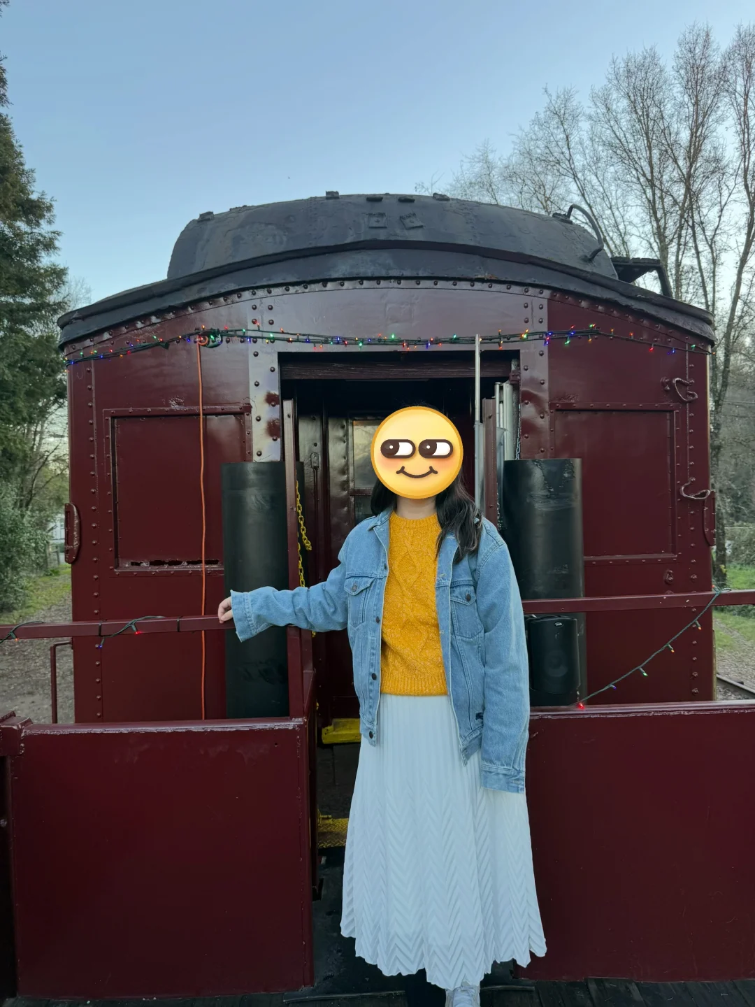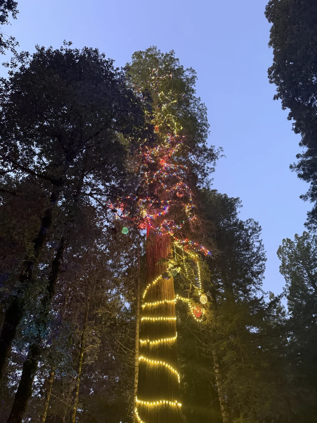 🌟下午我们去坐了Skunk Train,当时正是圣诞列车,可以看到世界上最大的圣诞树(图3-4),火车上还有吉他表演、Mr Skunk互动,小朋友们玩的很开心。平时的火车应该就是看红木森林