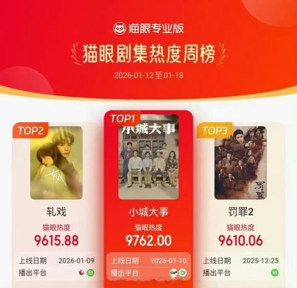 恭喜赵丽颖《小城大事》获得猫眼剧集热度周榜TOP1和酷云一周电视剧收视排名TOP1🎉🎉🎉小城大事