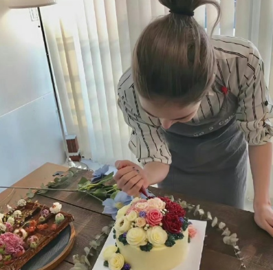 昆凌的蛋糕裱花做的好精致漂亮,可以开店了