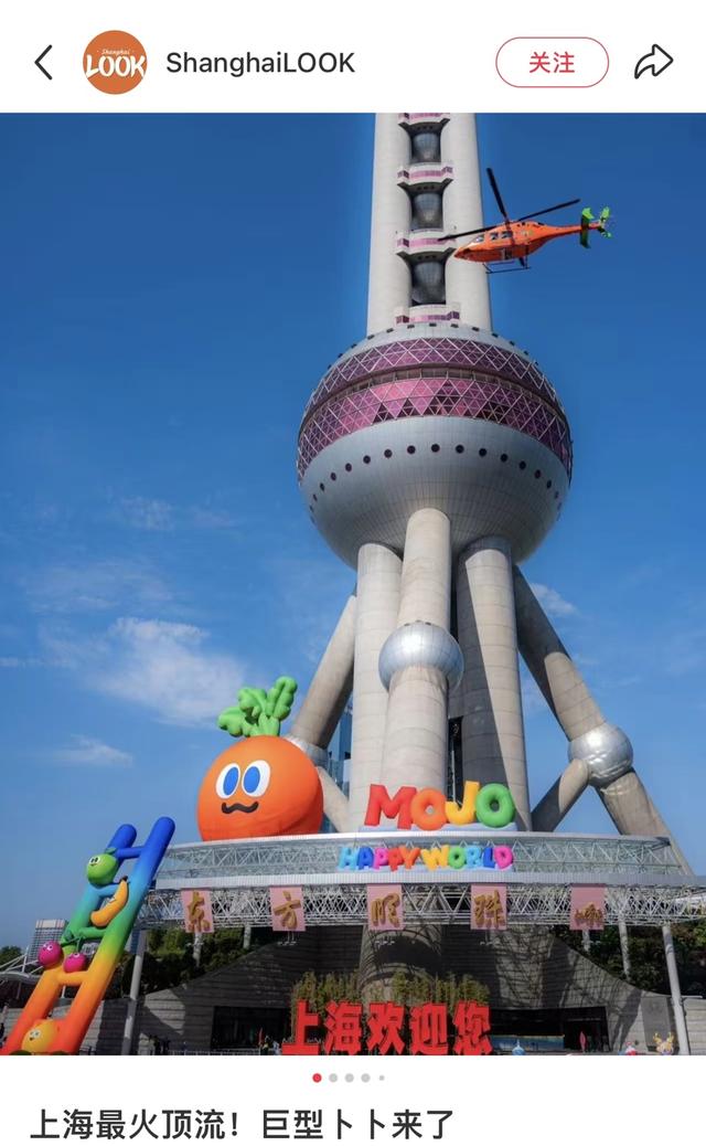 去年11月与相信音乐合作推出“MAYDAYLAND上海东方明珠梦想博览会”,延续升级“演艺+文旅+消费”的融合模式,集沉浸式特展、黄浦江主题游船、限定周边于一体。许多佩戴“卜卜”胡萝卜头(五月天阿信IP衍生玩偶)的观众前来游览。此外,限定特展“梦想起点”亮相78米环动多媒体观光层,这也是该空间首次场景焕新。置身其中,歌迷可通过巨型LED环幕,重温五月天的音乐旅程。