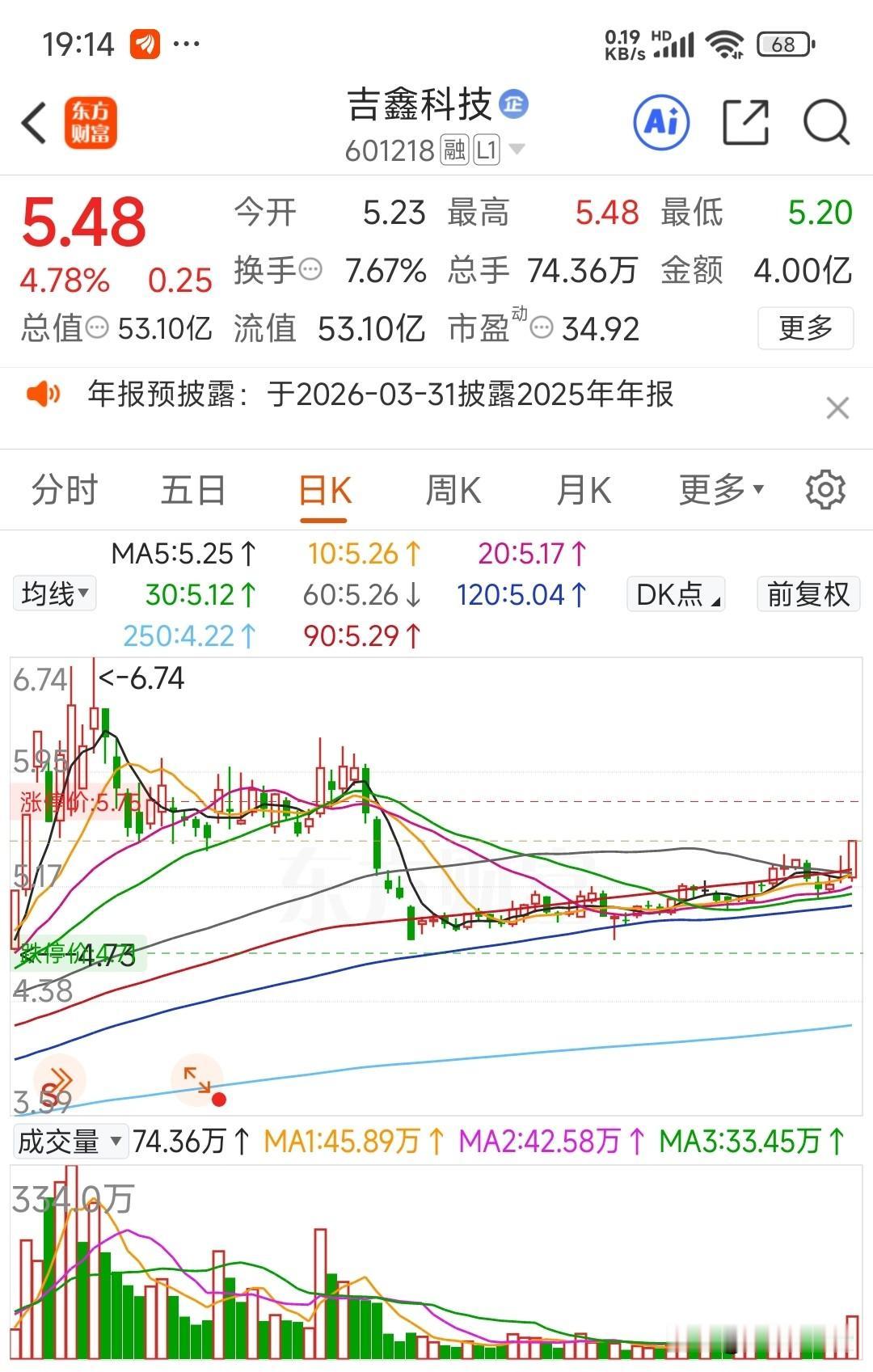 【吉鑫科技-复盘】风电板块中还在“沉睡”的龙头何时起飞? “吉鑫科技”是全球规模最大的风电铸件生产企业,国内市场占有率约40%,全球占比约20%,客户覆盖金风科技、远景能源、GE、西门子歌美飒等国内外主流整机商。 近日走势复盘:前期小平台箱体震荡,今日放量突破平台,能否借“电力及电网设备”全面开花东风,走一波像样的拉升行情?拭目以待中…… 关注“刘姥姥”,精彩分享真不少(麻烦亲们:点赞,收藏,分享)。 特别提醒:本文涉及内容及个股,仅供交流与参考,不是荐股,不得以此作为买卖依据,盈亏自负。吉鑫科技 风电板块 风电概念股