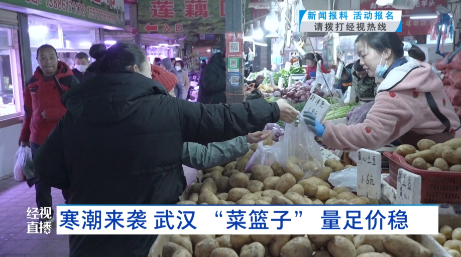 最近两天,湖北迎来大面积寒潮雨雪天气,清晨出门的市民都穿起了厚棉衣。降温天里,“菜篮子”稳不稳?价格涨没涨?今天上午,经视直播记者走访了武汉多家生鲜市场。