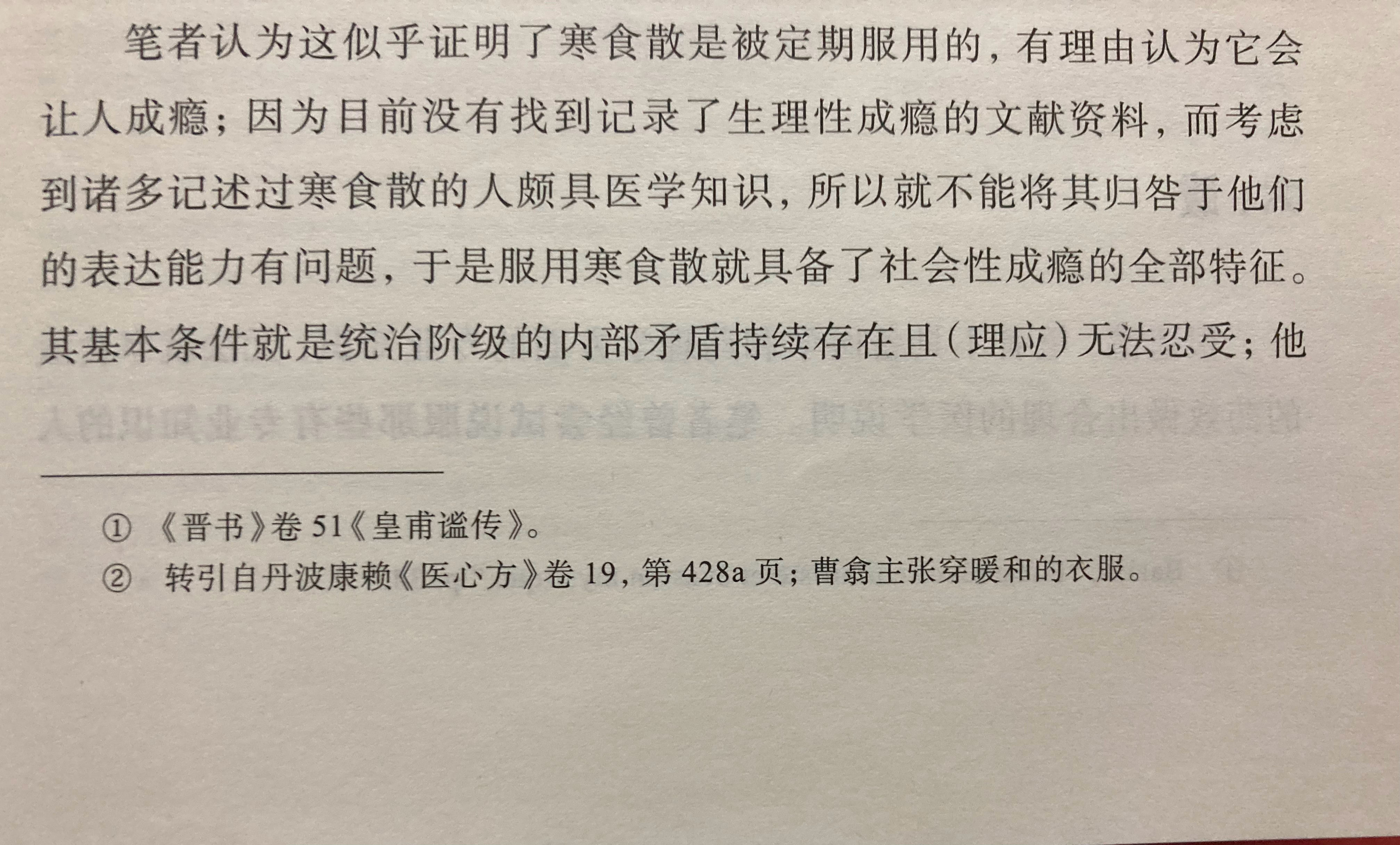 在这篇迄今为止西方学界对五石散最具分量的超长论文中,鲁道夫•瓦格纳提出,经何晏重新发现并大力提倡的寒食散,是魏晋社会上层卷入政治斗争的“浮华”群体为排解政治性抑郁而寻求的解药。引用的白乐日那句精辟啊:延年益寿之药只是对断头的补充。