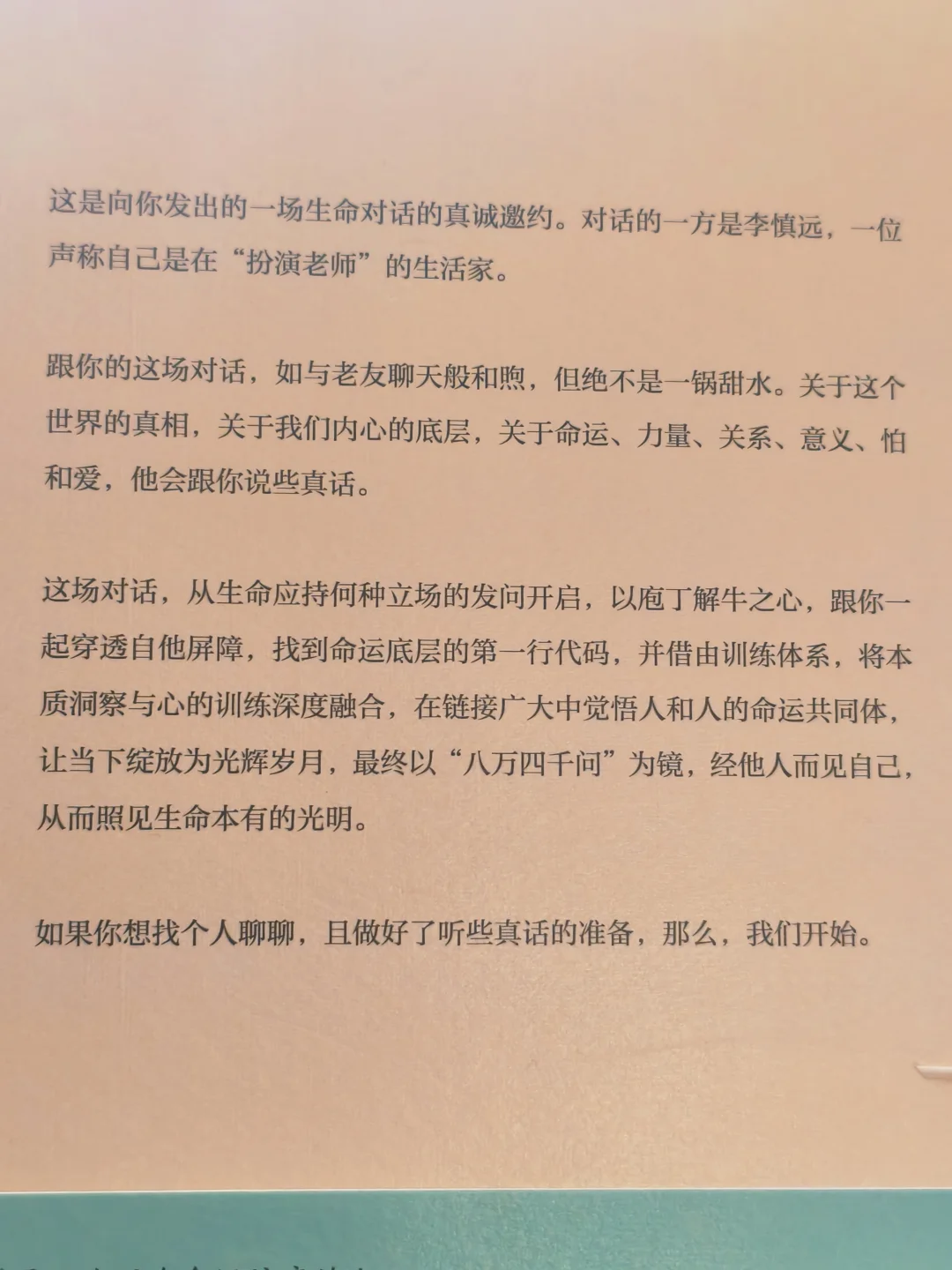 书末的“八万四千问”章节,收录了真实学员的困惑。读时我数次眼眶发热——那个纠结“要不要离婚”的主妇,那个恐惧“35岁失业”的程序员,让我找到了前所未有的情感共鸣,也更加明白,他们的挣扎本质上都与同一个命题交手:我们是否有勇气直面生命本有的光明?
