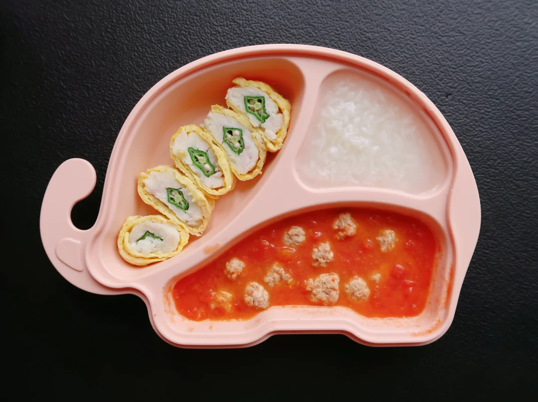 图2🥚秋葵山药鸡蛋卷:秋葵焯水,山药蒸熟碾成泥,鸡蛋打散放入水淀粉煎不容易破,煎好然后卷一起搞定,番茄肉丸做法之前有分享哈