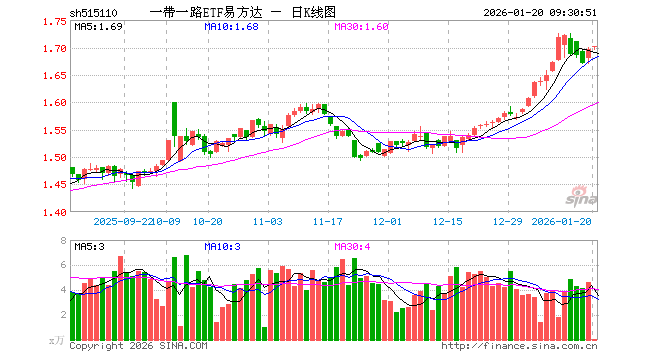 一带一路ETF易方达(515110)业绩比较基准为中证国企一带一路指数收益率,管理人为易方达基金管理有限公司,基金经理为刘树荣,成立(2019-11-06)以来回报为69.83%,近一个月回报为9.49%。
