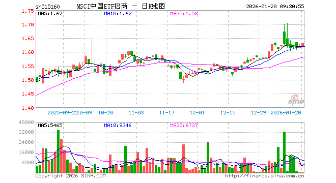 1月20日,MSCI中国ETF招商(515160)开盘涨0.06%,报1.621元。MSCI中国ETF招商(515160)重仓股方面,贵州茅台开盘涨0.25%,宁德时代涨0.32%,招商银行涨0.05%,工业富联跌0.99%,长江电力涨0.00%,紫金矿业涨0.00%,寒武纪跌0.19%,中国平安涨0.08%,比亚迪涨0.03%,海光信息涨1.97%。