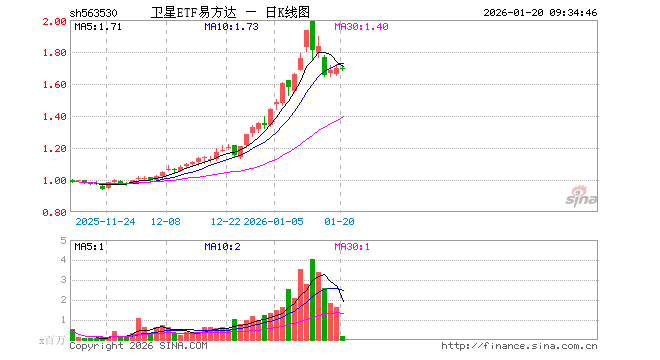 卫星ETF易方达(563530)业绩比较基准为中证卫星产业指数收益率,管理人为易方达基金管理有限公司,基金经理为张泽峰,成立(2025-11-05)以来回报为69.00%,近一个月回报为42.80%。