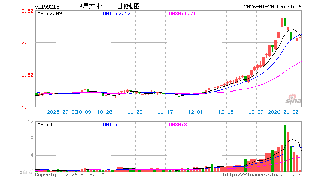 1月20日,卫星产业ETF(159218)开盘涨0.48%,报2.076元。卫星产业ETF(159218)重仓股方面,航天电子开盘涨1.81%,中国卫星涨1.05%,华测导航涨0.23%,中国卫通涨0.00%,中科星图涨0.92%,北方导航涨0.06%,北斗星通涨0.00%,四维图新跌0.19%,臻镭科技涨0.00%,新雷能涨0.00%。
