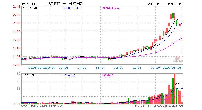 1月20日,卫星ETF(159206)开盘涨1.11%,报1.997元。卫星ETF(159206)重仓股方面,睿创微纳开盘涨0.77%,航天电子涨1.81%,中国卫星涨1.05%,复旦微电跌0.01%,上海瀚讯涨2.49%,中兴通讯跌0.18%,华力创通涨2.10%,电科芯片涨0.69%,隆盛科技涨1.08%,振芯科技涨0.96%。