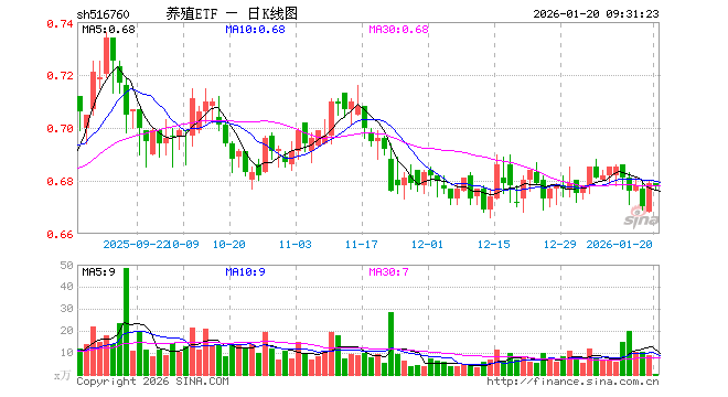 1月20日,养殖ETF(516760)开盘涨0.00%,报0.679元。养殖ETF(516760)重仓股方面,牧原股份开盘涨0.11%,温氏股份涨0.00%,海大集团跌0.13%,新希望跌0.11%,梅花生物涨0.19%,大北农涨0.00%,圣农发展涨0.12%,生物股份涨0.05%,天康生物跌0.28%,立华股份跌0.30%。