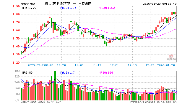 科创芯片50ETF(588750)业绩比较基准为上证科创板芯片指数收益率,管理人为汇添富基金管理股份有限公司,基金经理为孙浩,成立(2024-12-18)以来回报为79.82%,近一个月回报为21.07%。