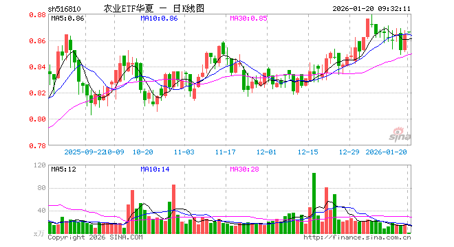 1月20日,农业ETF华夏(516810)开盘涨0.23%,报0.866元。农业ETF华夏(516810)重仓股方面,牧原股份开盘涨0.11%,温氏股份涨0.00%,海大集团跌0.13%,藏格矿业涨1.10%,盐湖股份涨1.68%,新希望跌0.11%,亚钾国际涨0.38%,梅花生物涨0.19%,扬农化工涨0.10%,大北农涨0.00%。