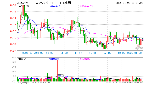 1月20日,畜牧养殖ETF(516670)开盘涨0.14%,报0.709元。畜牧养殖ETF(516670)重仓股方面,牧原股份开盘涨0.11%,温氏股份涨0.00%,海大集团跌0.13%,新希望跌0.11%,梅花生物涨0.19%,大北农涨0.00%,圣农发展涨0.12%,生物股份涨0.05%,天康生物跌0.28%,立华股份跌0.30%。