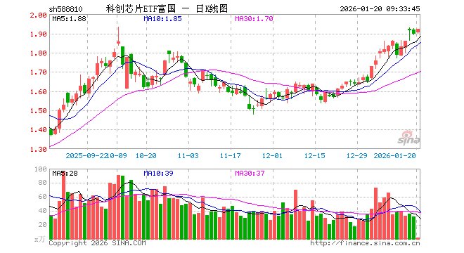 科创芯片ETF富国(588810)业绩比较基准为上证科创板芯片指数收益率,管理人为富国基金管理有限公司,基金经理为张圣贤,成立(2024-12-30)以来回报为89.89%,近一个月回报为21.26%。