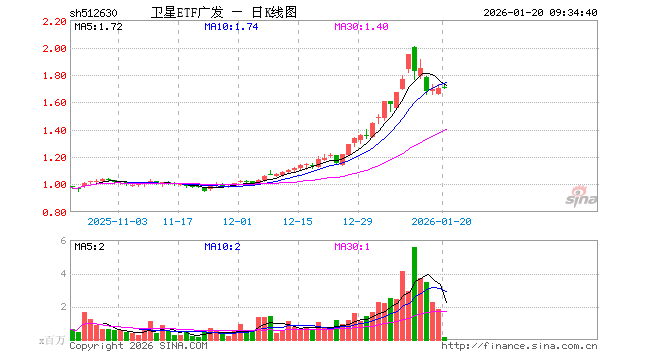 卫星ETF广发(512630)业绩比较基准为中证卫星产业指数收益率,管理人为广发基金管理有限公司,基金经理为吕鑫,成立(2025-10-13)以来回报为69.99%,近一个月回报为43.05%。