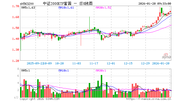 中证2000ETF富国(563200)业绩比较基准为中证2000指数收益率,管理人为富国基金管理有限公司,基金经理为牛志冬,成立(2023-09-28)以来回报为63.96%,近一个月回报为12.01%。