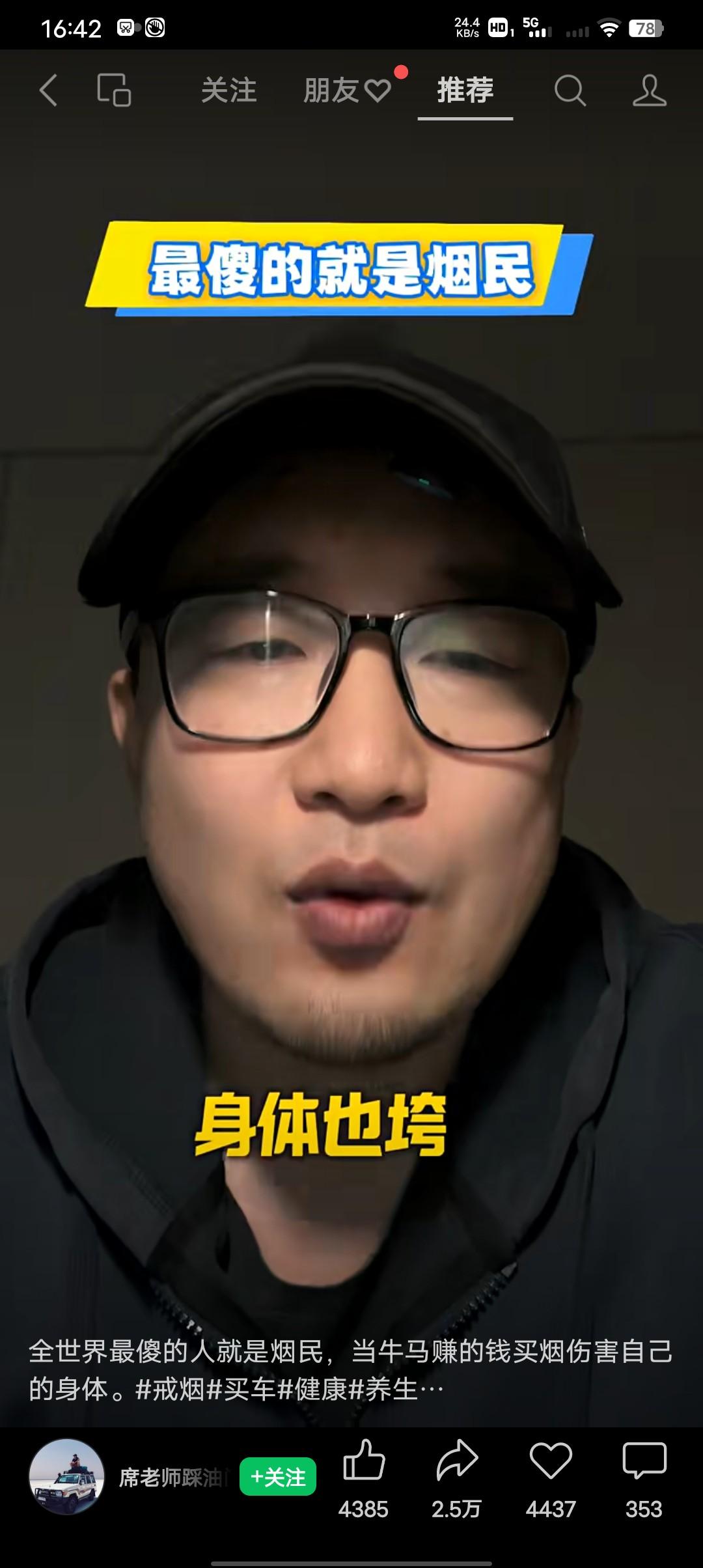 全世界最傻的就是烟民,拿着自己当牛辛苦赚的钱拿来买烟伤害自己。 明知道抽烟对身体不好,但就是劝自己对身体没事,还强词夺理的劝自己说,赚钱不就是来享受的吗?不抽烟,不喝酒,还是个男人吗?到最后钱也没了,身体也垮了,还要连累家里人,到最后还归结说这一切都是命。 岂不知这都是自己找的,怎么消费不行?非要抽烟伤害身体呢,所以狠狠心咬咬牙把烟戒了吧,你抽烟自己家里人一点好,都捞不着,哦不对,还有一个二手烟来伤害家里人了呢。别再傻瓜一样的,用自己的辛苦钱养别人的孙子,懂了吗?