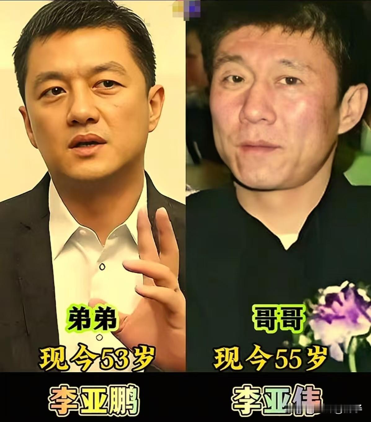 娱乐圈里不光有姐妹花,兄弟档也挺有意思。有的是兄弟俩都出名,但名气大小有别; 黄家驹(兄)& 黄家强(弟) 这对兄弟是Beyond乐队的核心。哥哥黄家驹是乐队的主唱、吉他手和灵魂创作者,弟弟黄家强是贝斯手。兄弟俩在音乐上相辅相成,共同创造了无数经典。 马赫(兄,现43岁)& 马可(弟,现35岁) 哥哥马赫是演员,毕业于北京电影学院,演过《红娘子》、《思美人》等剧,但知名度相对不高。弟弟马可则凭借《花千骨》中“杀阡陌”一角爆红,成为当红小生。 李亚伟(兄,现55岁)& 李亚鹏(弟,现53岁) 哥哥李亚伟是企业家,据传早年曾从事IT行业,后来可能参与家族生意或投资,非常低调。弟弟李亚鹏曾是当红小生,主演过多部金庸剧
