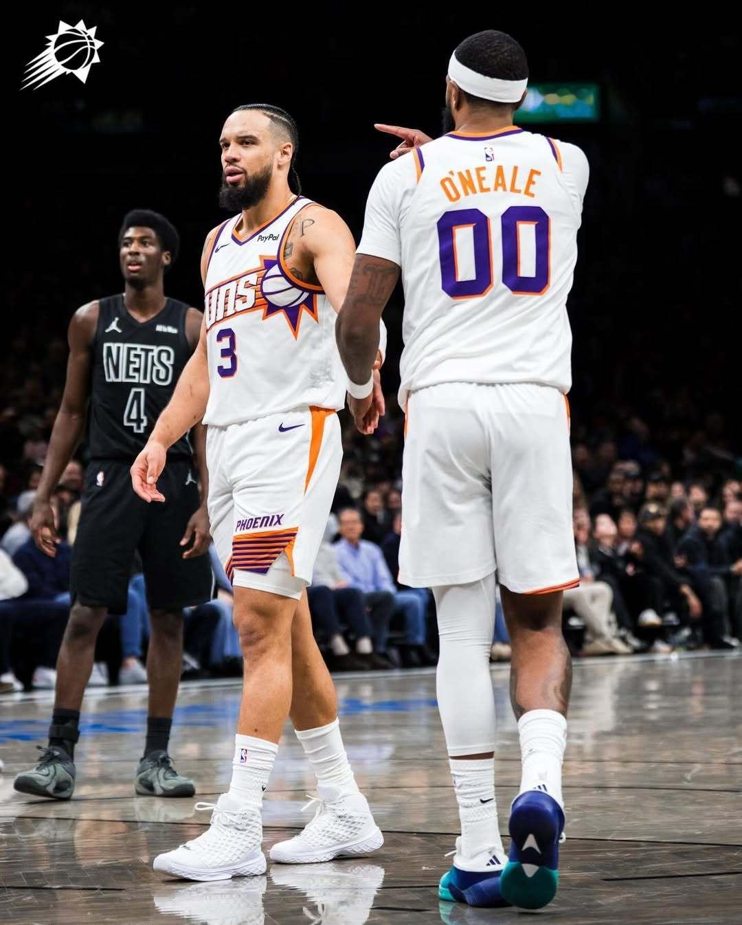 两连胜到手!🎉 🎉明日背靠背将对阵费城,随后迎来客场之旅收官战,亚特兰大老鹰。本场比赛数据一览:狄龙:27 分 5 篮板 2 助攻,命中 6 记三分布克:24 分 4 篮板 4 助攻吉莱斯皮:22 分 5 篮板 5 助攻,命中 5 记三分马威:16 分 8 篮板 3 盖帽 2 抢断阿伦:14 分 3 篮板 8 助攻,命中 4 记三分奥尼尔:11 分 3 篮板 5 助攻伊戈达罗:5 分 4 篮板 1 助攻菲尼克斯太阳 | 旭日东升 | 太阳战胜篮网