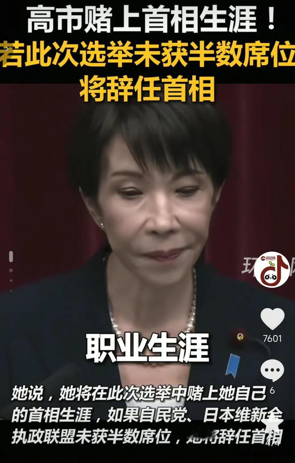高市早苗放狠话了,将赌上自己首相的职业生涯,若是这次选举没有获得半数席位,高市早苗将辞去首相,而高市早苗做这个决定明显是准备好了破釜沉舟,在上任以来就到处搞事,还要解散众议院,遭到两党反对,这次可能愿望就要落空了