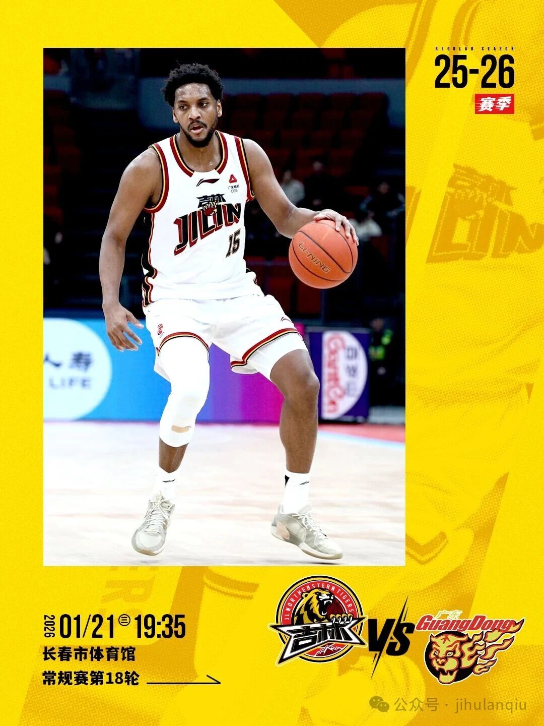 配文:1月21日,2025-2026赛季CBA常规赛第18轮,吉林长白山恩都里将坐镇主场迎战广东东阳光!