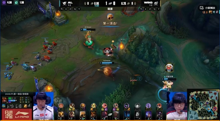 直播吧1月20日讯2026年LPL第一赛段今天继续,今天的首场比赛是两支尚未取得首胜队伍的较量!AL对阵WBG!