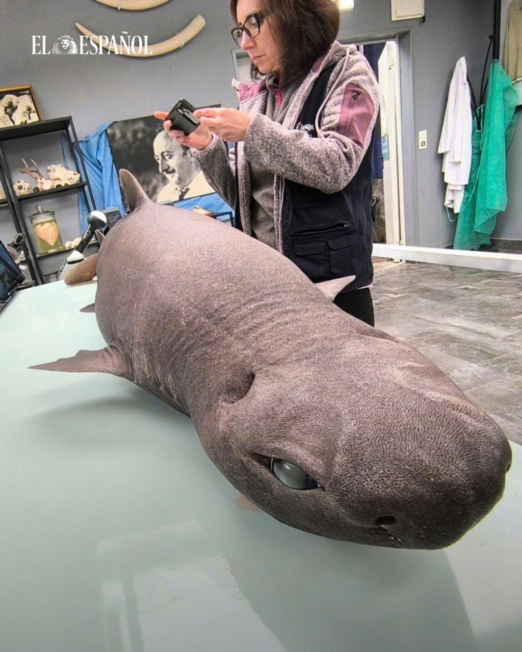 🦈🌊【西班牙惊现动漫感巨眼鲨 :巨眼深海掠食者罕见搁浅】近日,西班牙海岸惊现一条罕见的铠鲨(Dalatias licha),因双眼巨大如动漫角色,被网友称为“动漫鲨”。这种深海掠食者通常生活在1600米深的海底,巨眼其实是为了适应深海黑暗环境的特殊进化,靠近海岸搁浅极为罕见。研究人员还发现这条雌鲨体内竟怀有12个胚胎!
