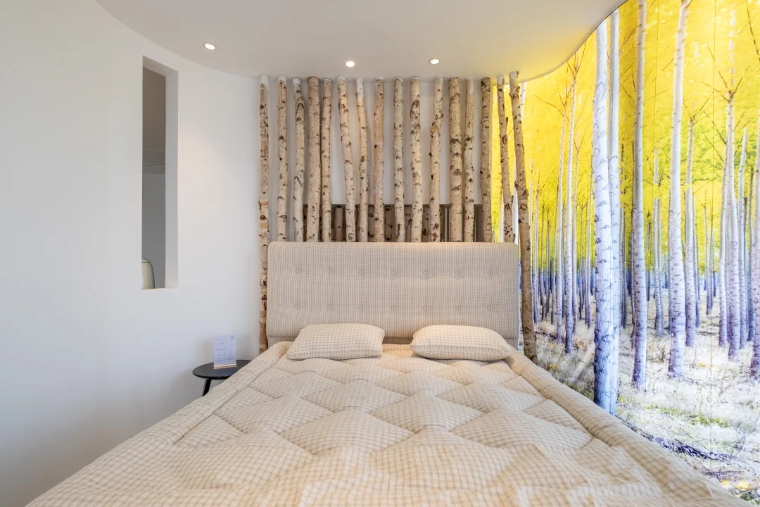▪️ 这不是展厅,是睡眠美术馆 占据整层高空视野 落地窗外就是金鸡湖波光 每张床垫都对着湖景陈列 试躺时恍惚在度假酒店