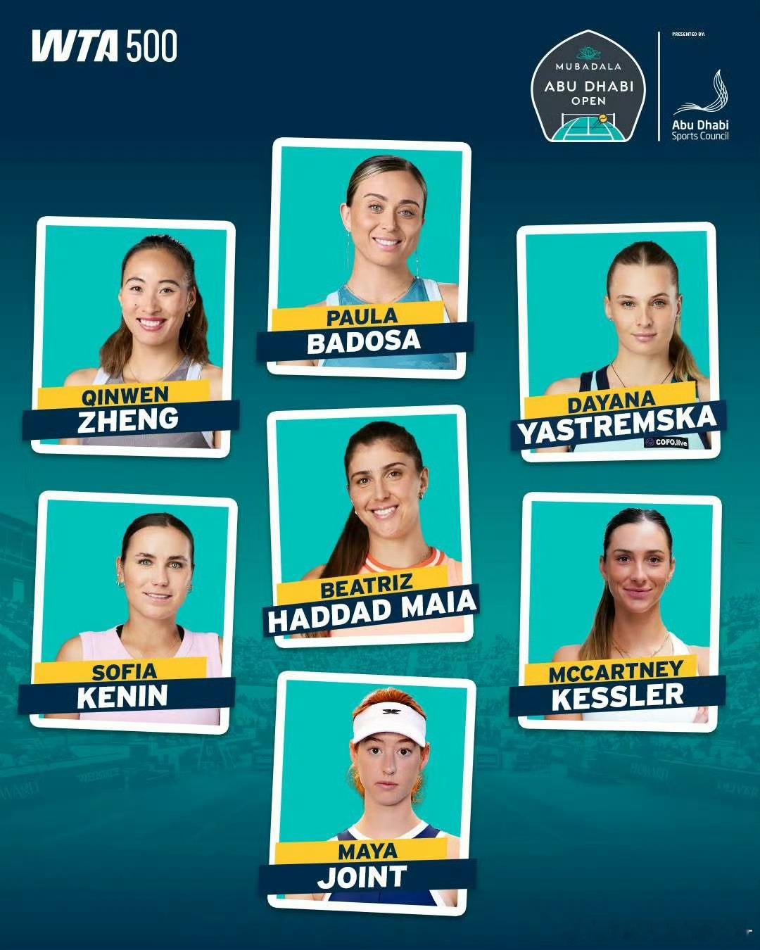 🇨🇳郑钦文计划参加WTA500阿布扎比比赛时间:2月1日-7日这一站参赛名单