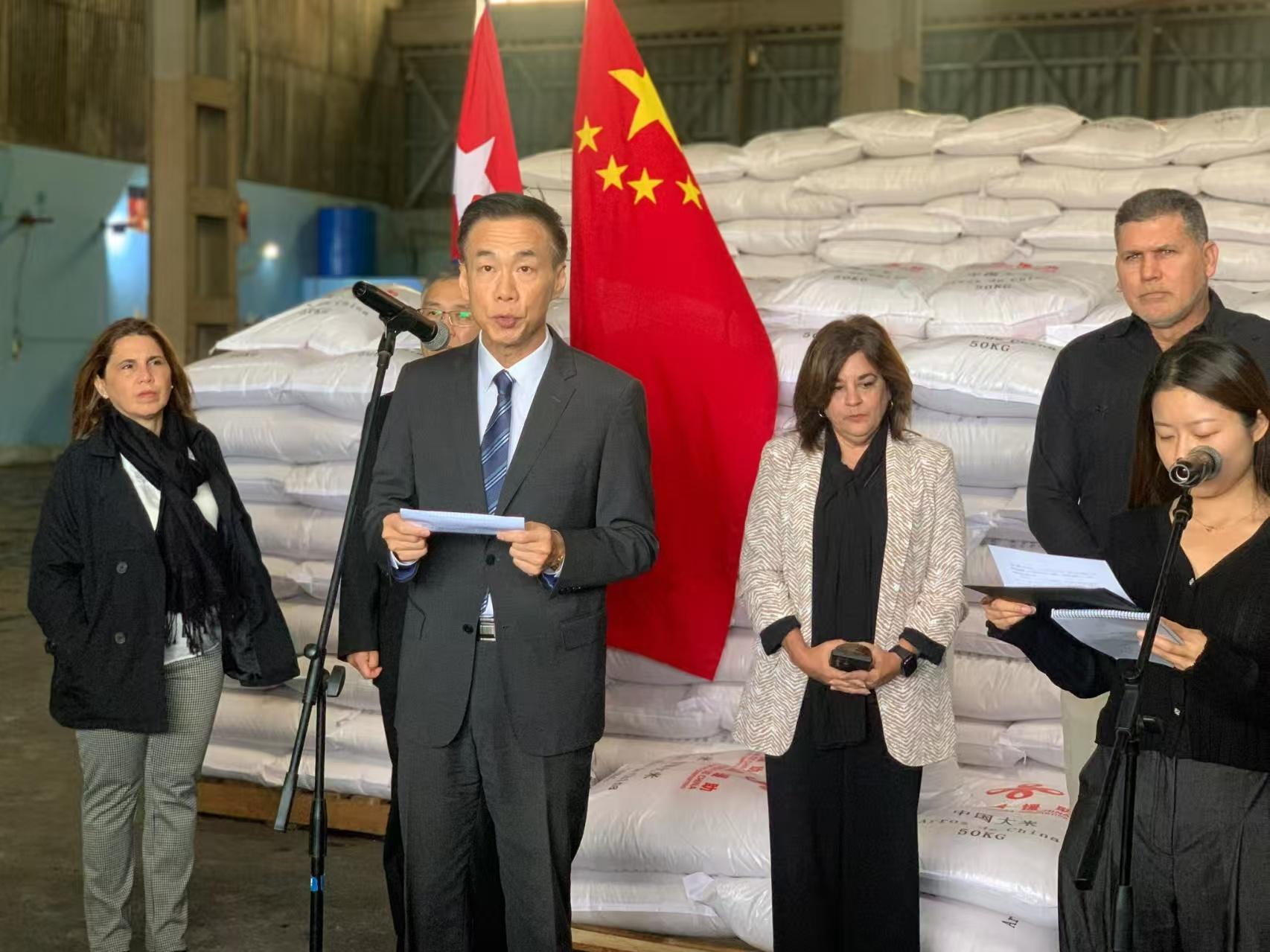 中国向古巴提供3万吨紧急大米援助,第一批紧急食品援助已移交给古巴方面,第二批也已