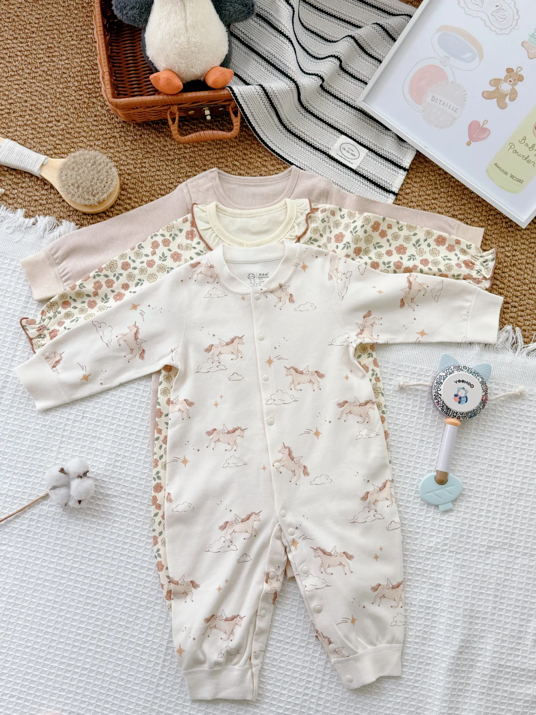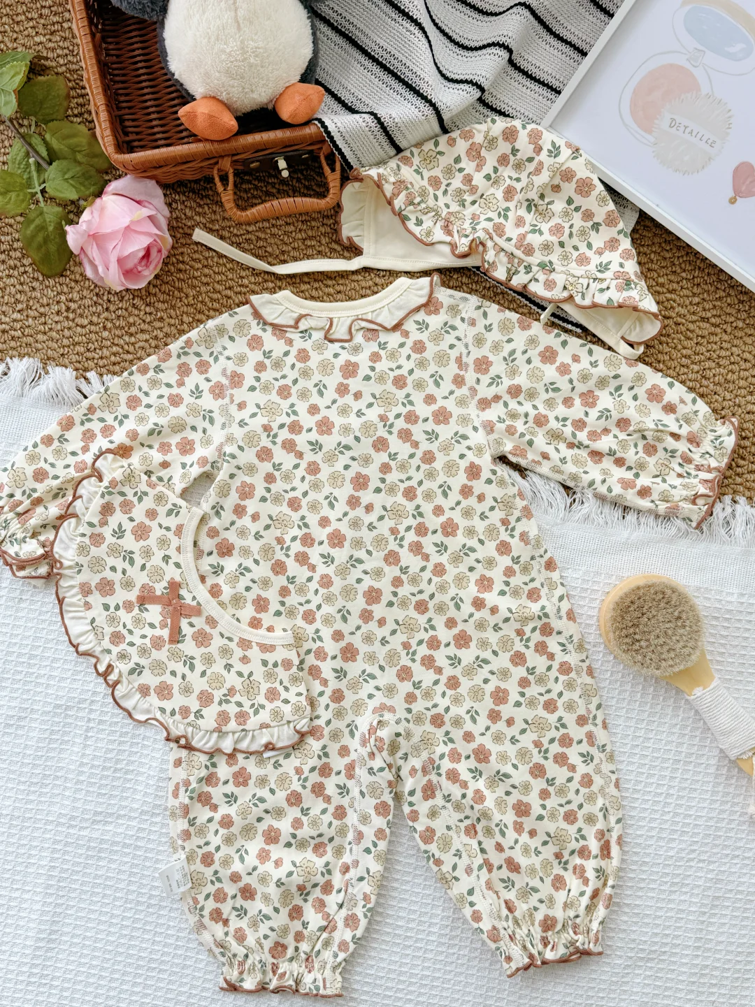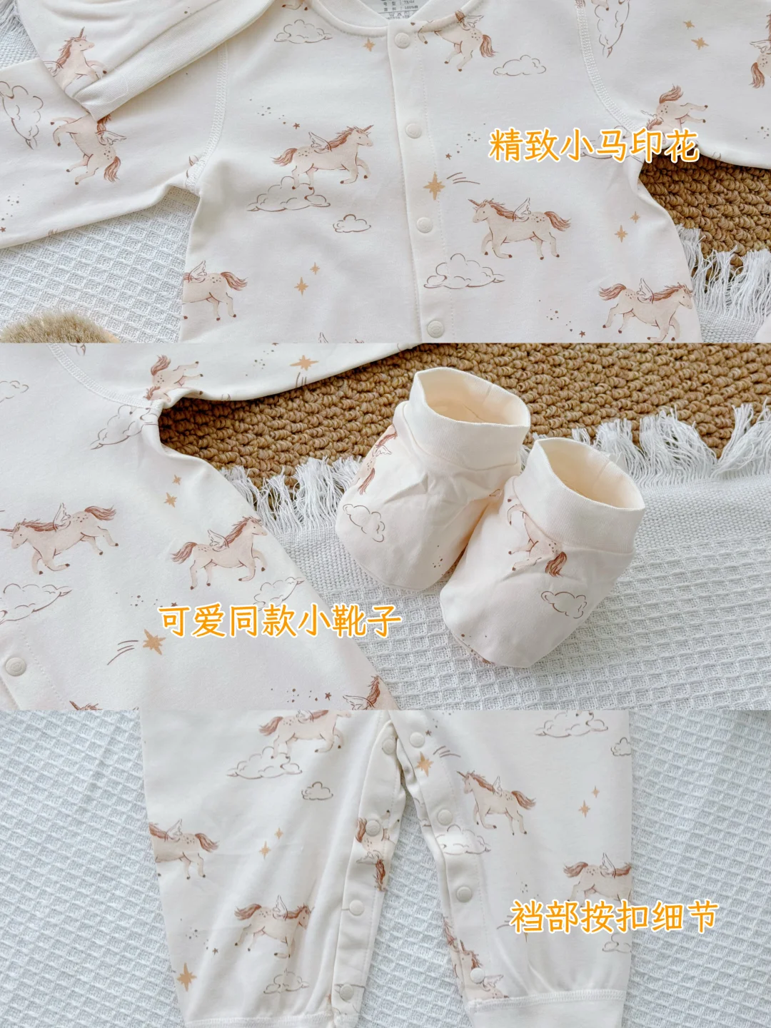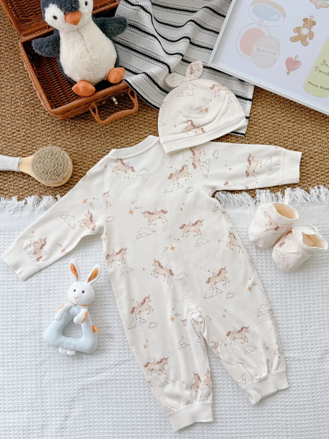 给宝宝的自然得“舒服+好看+安全” 贴肤穿的“自然“,娃动来动去也不会闷~ 一套从头都给宝贝准备好! 出片buff叠满🙌软fufu的好可爱 让宝宝在初生的时光里 被温暖轻轻拥抱