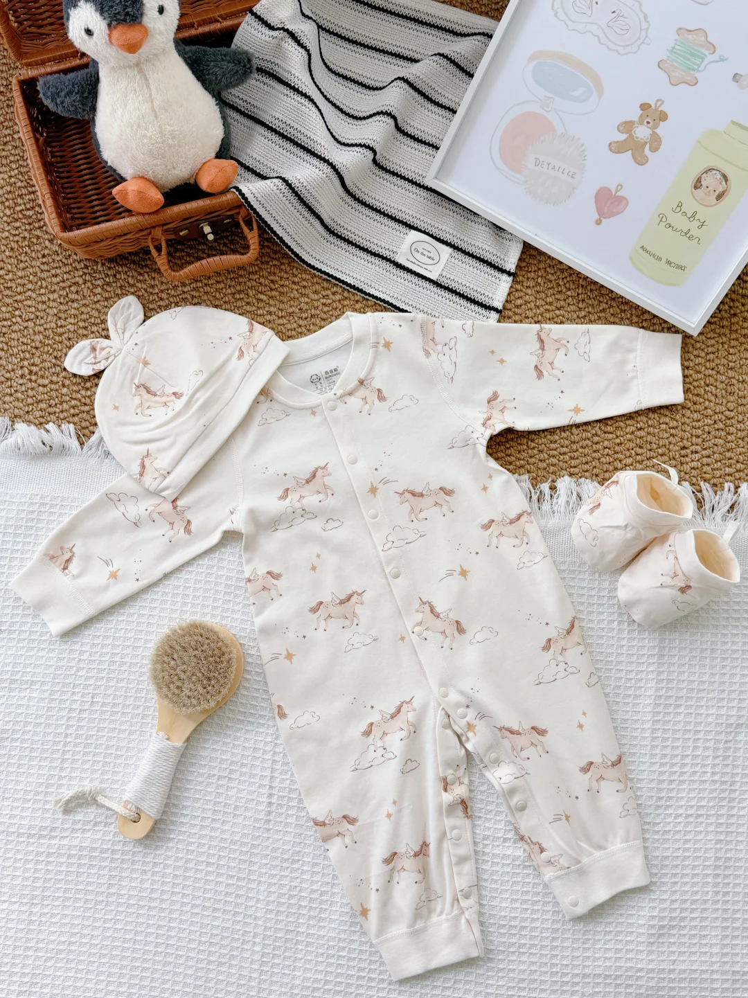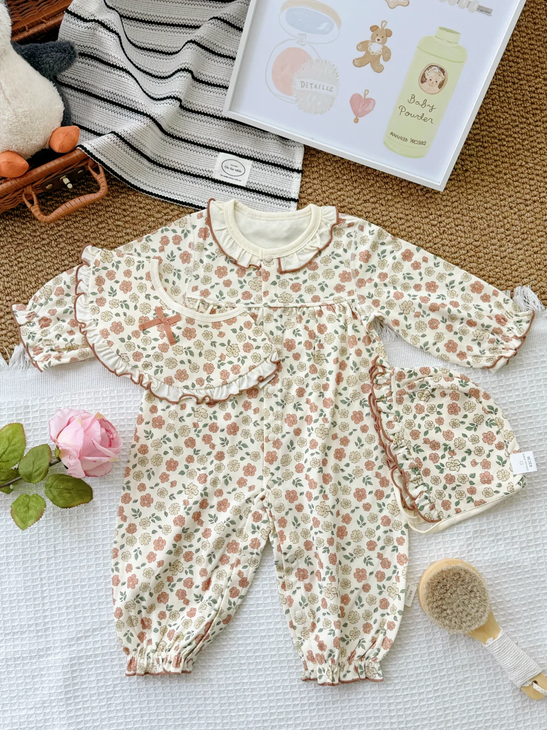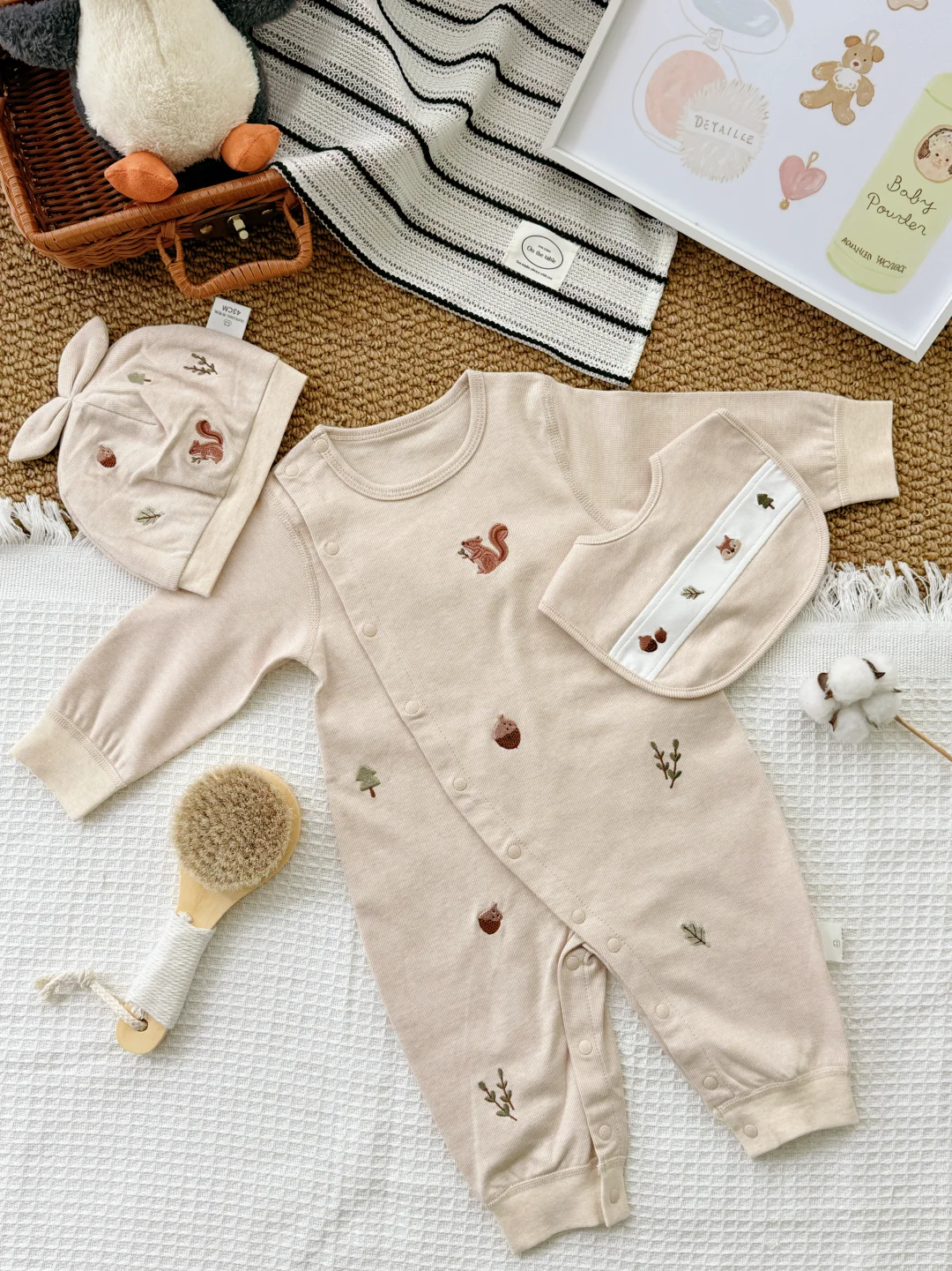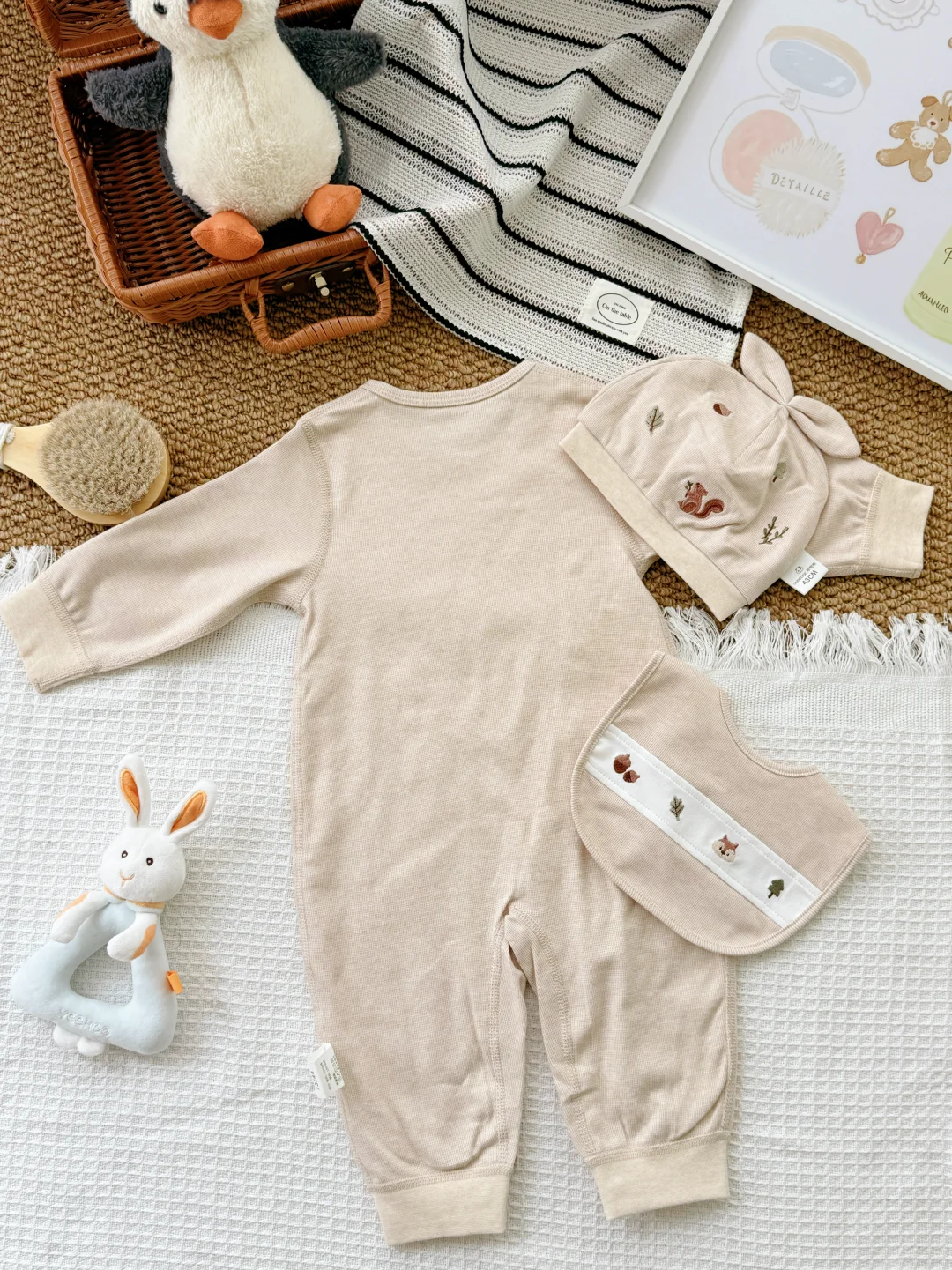 给宝宝的自然得“舒服+好看+安全” 贴肤穿的“自然“,娃动来动去也不会闷~ 一套从头都给宝贝准备好! 出片buff叠满🙌软fufu的好可爱 让宝宝在初生的时光里 被温暖轻轻拥抱