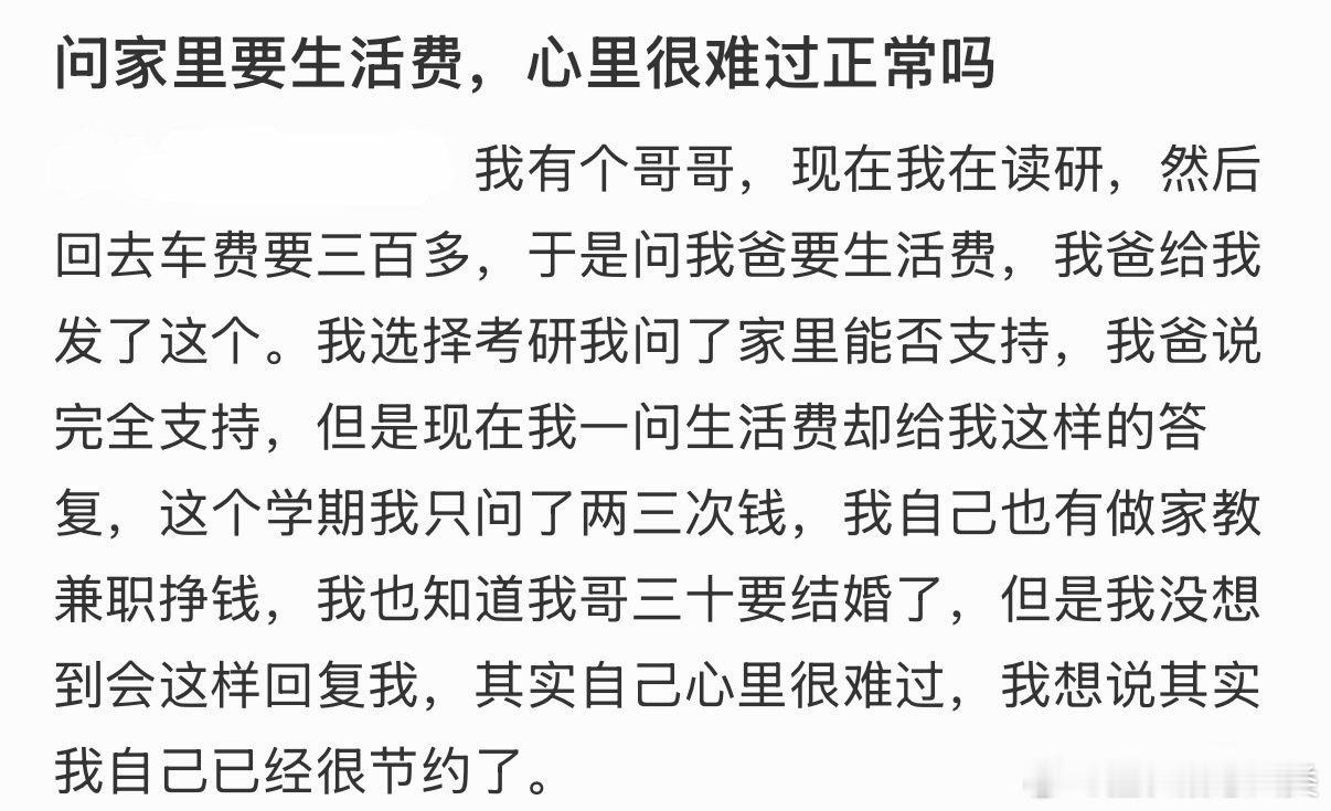 向家里要生活费时感到难过,这是正常的吗?