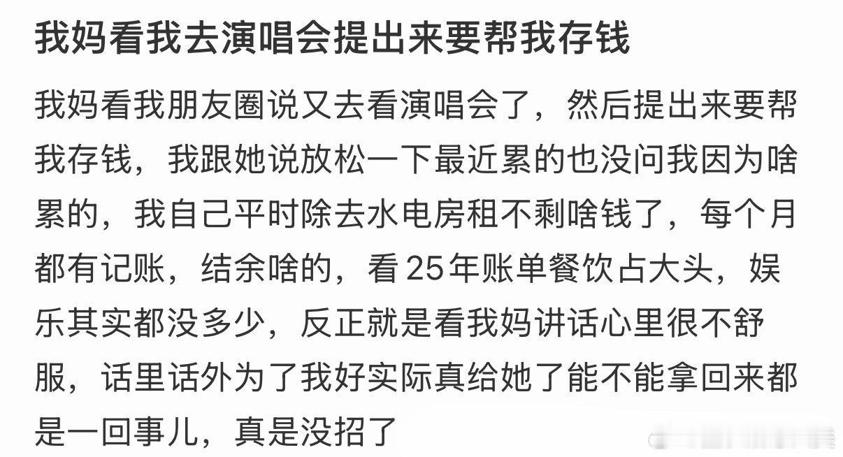 我妈看我去看演唱会,提议帮我存钱。