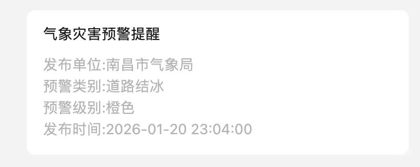 南昌市气象局发布道路结冰橙色预警