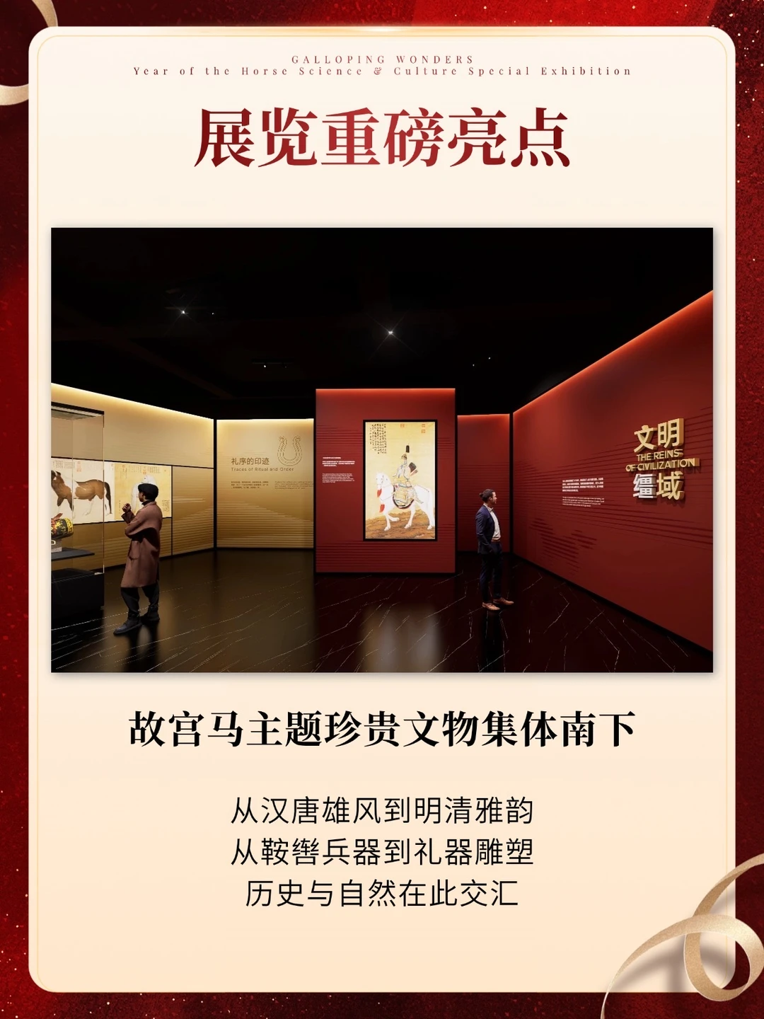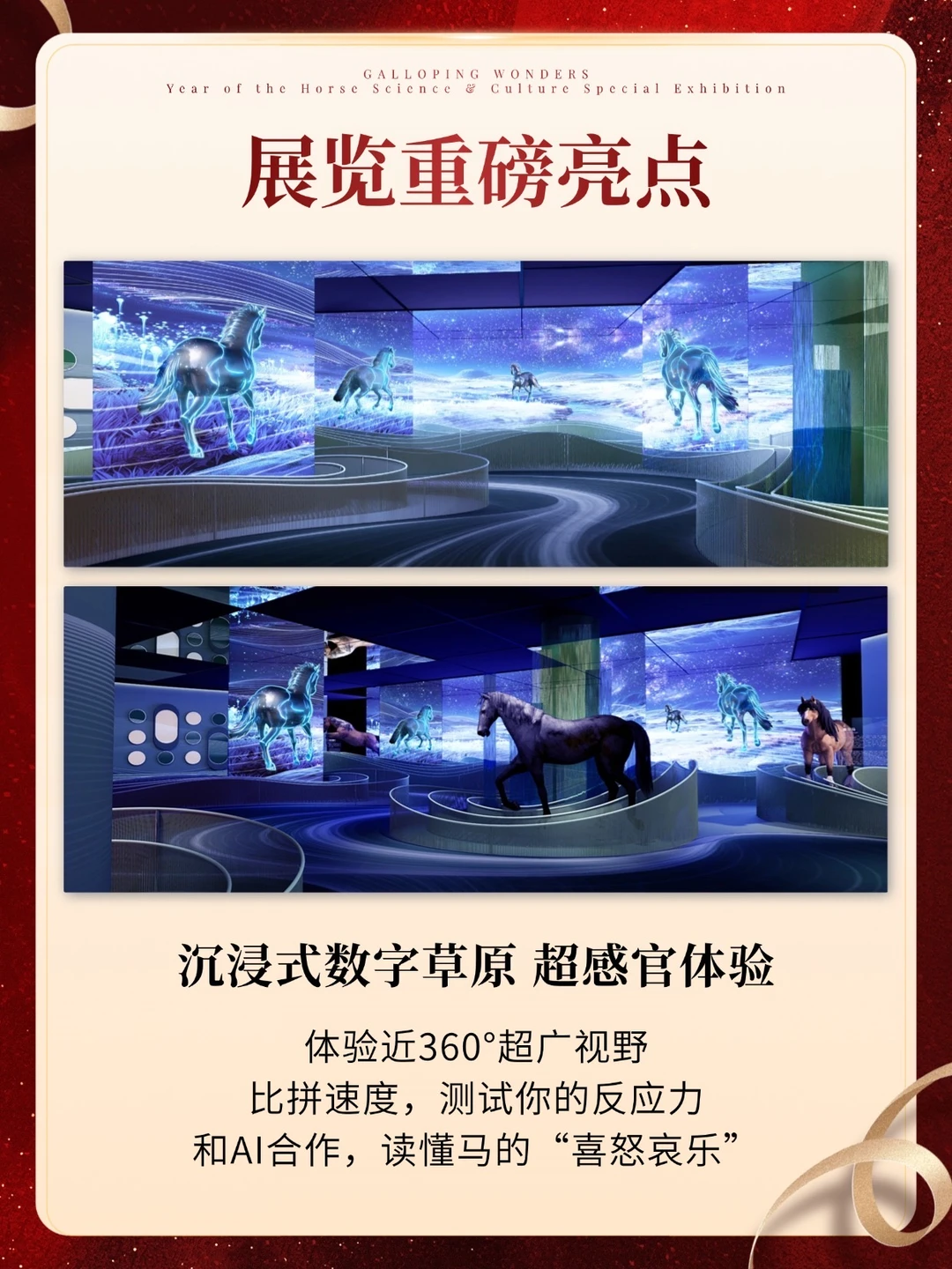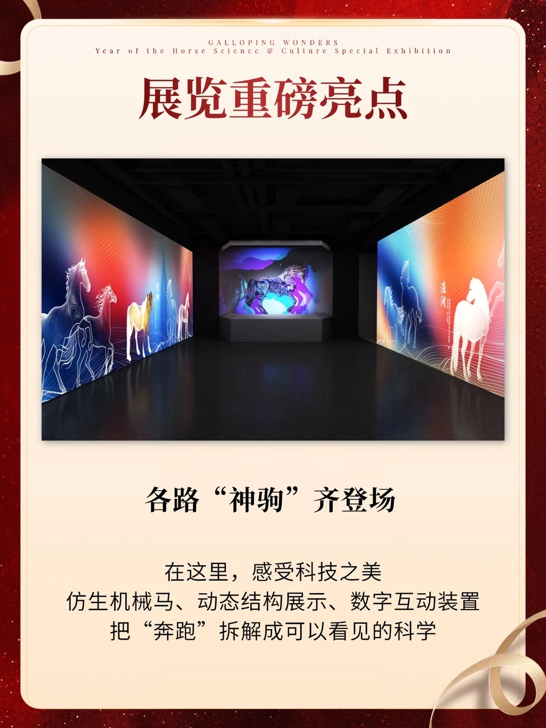 💡回归亮点:作为焕新后的首个年度大展,直接放出王炸—联合故宫博物院推出 《奇骥奔腾》马年科技文化特展!