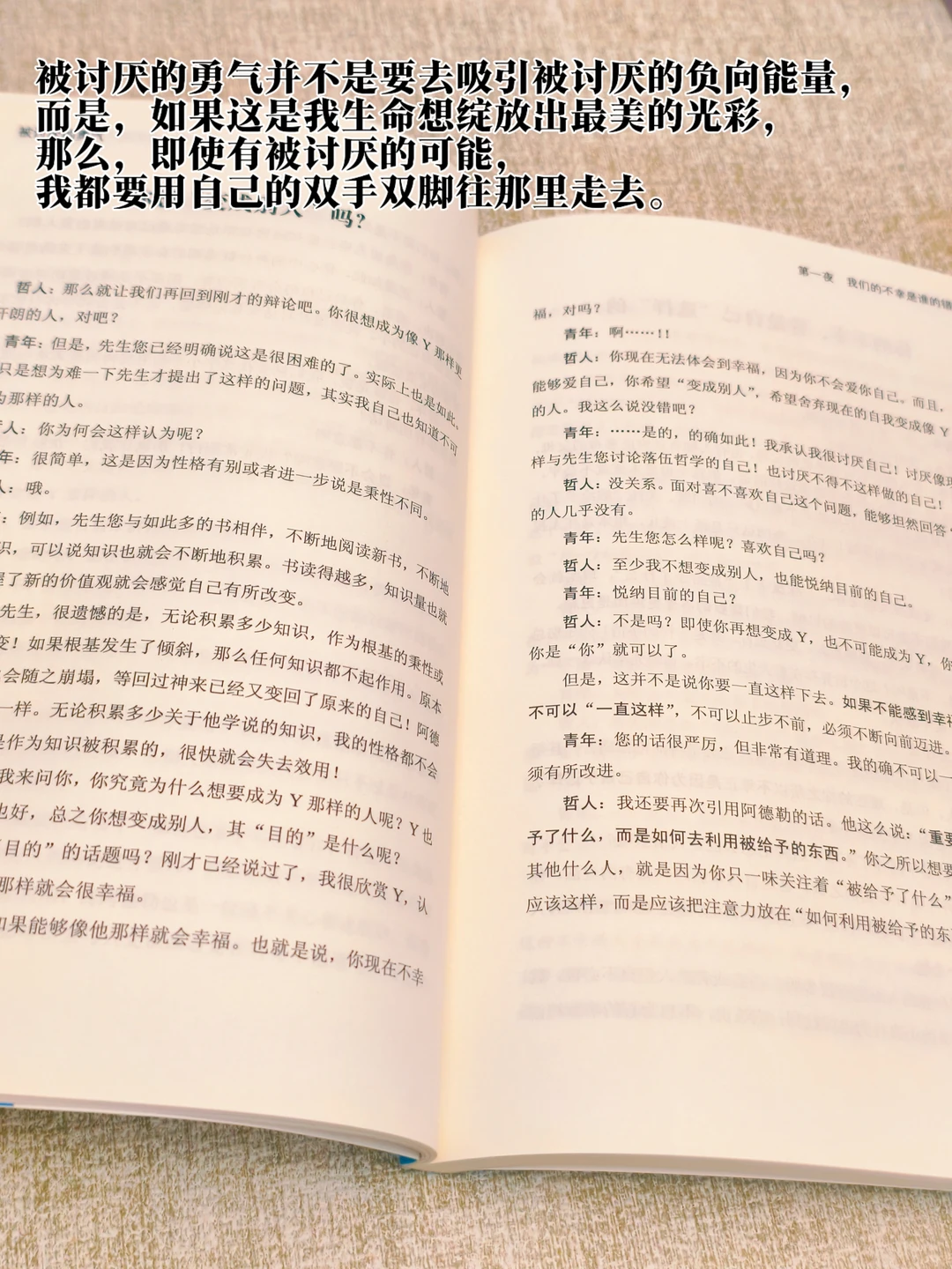 被讨厌的勇气并不是要去吸引被讨厌的负向能量,而是,如果这是我生命想绽放出最美的光彩,那么,即使有被讨厌的可能,我都要用自己的双手双脚往那里走去。