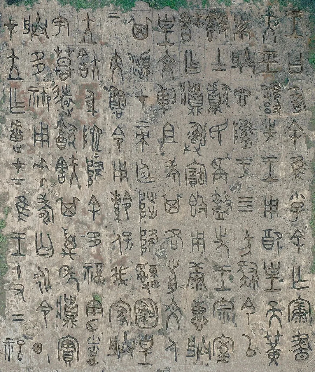 㝬hú簋又称胡簋、厉王簋,是迄今发现的最重的青铜簋,被称为“簋王”,是罕见的周王自作礼器。通高59厘米,口径43厘米, 腹深23厘米,重60公斤, 今藏陕西省扶风青铜器博物馆。 1978年5月岀土于陕西省扶风县法门镇齐村(属周原遗址中心区),是该村在村西南修建陂塘时被推土机推岀来的。出土时已破损成多片,后经县博物馆专业人员清理、拼对、焊接修复成完整器形。侈口、束颈、圆鼓腹、低圈足、高正方座,两侧有对称附耳且呈浮雕镂孔异形龙凤状、高大且耳下有珥,无盖(是否丢失不得而知)。口沿下及圈足各饰一圈窃曲纹,圆腹及方座四面均饰直棱纹,方座上四角各饰一组变异夔龙纹。全器除两耳为浅绿锈外其余大部分多为对器物有保护作用的益锈黑漆骨,表面较为光洁,浅黑透亮。整器上圆下方,型制硕大、厚重,纹饰简约、大方,锈色古朴、美观。腹内底有铭文12行124字。据铭文可知作器者为㝬,所以称㝬簋,㝬即西周厉王。此簋是其在位十二年(公元前866年)为祭祀先祖而铸之礼器。 铭文释文为: 王曰:“有(旧)余隹(虽)小子,余亡康昼夜,经雍先王,用配皇天,簧(横)黹(致)朕心,坠(施)于亖(四)方。肆余以(义)士献民,爯(称)盩先王宗室。”㝬作将彝宝簋,用康惠朕皇文剌(烈)且(祖)考,其各((格)歬(前)文人,其濒才(在)帝廷陟降,申绍皇上帝大鲁令(命),用令保我家、朕立(位)、㝬身,阤阤降余多福,宪(宣)(导)宇(吁)慕(谟)远猷。㝬其万年,将实朕多御,用贲(祈)寿,匃(gài)永令(命),畯才(在)立(位),乍疐(dì)才(在)下。隹(唯)王十又二祀。 铭文大意为: 我虽不才,却时刻不敢贪图安逸,怠于王事,我遵从先祖教诲,行皇天帝王之道,竭力成为称职的君主,施惠于四方。我启用贤达开明之士,继承先王大业。现在特意制作这件彝器宝簋,祭告伟大而显赫的诸位祖先及以前的文人先贤。望先贤们经常往来于天庭,继续恪守皇天旨意,以护佑姬周王室及我的王位、身体。希望先祖降赐多福,赐与我们图谋伟业的智慧。我将永远虔诚祭祀,用来祈求长寿永命,永久在位,成为人间砥柱。时在厉王十二年。 㝬簋铭文字体是西周中期金文工整规范的形成、完善、延续和发展,与西周早期金文相较,其用笔的轻重节奏和线条的粗细变化都大大减弱,取而代之的是线条“婉而通”的玉箸形态。