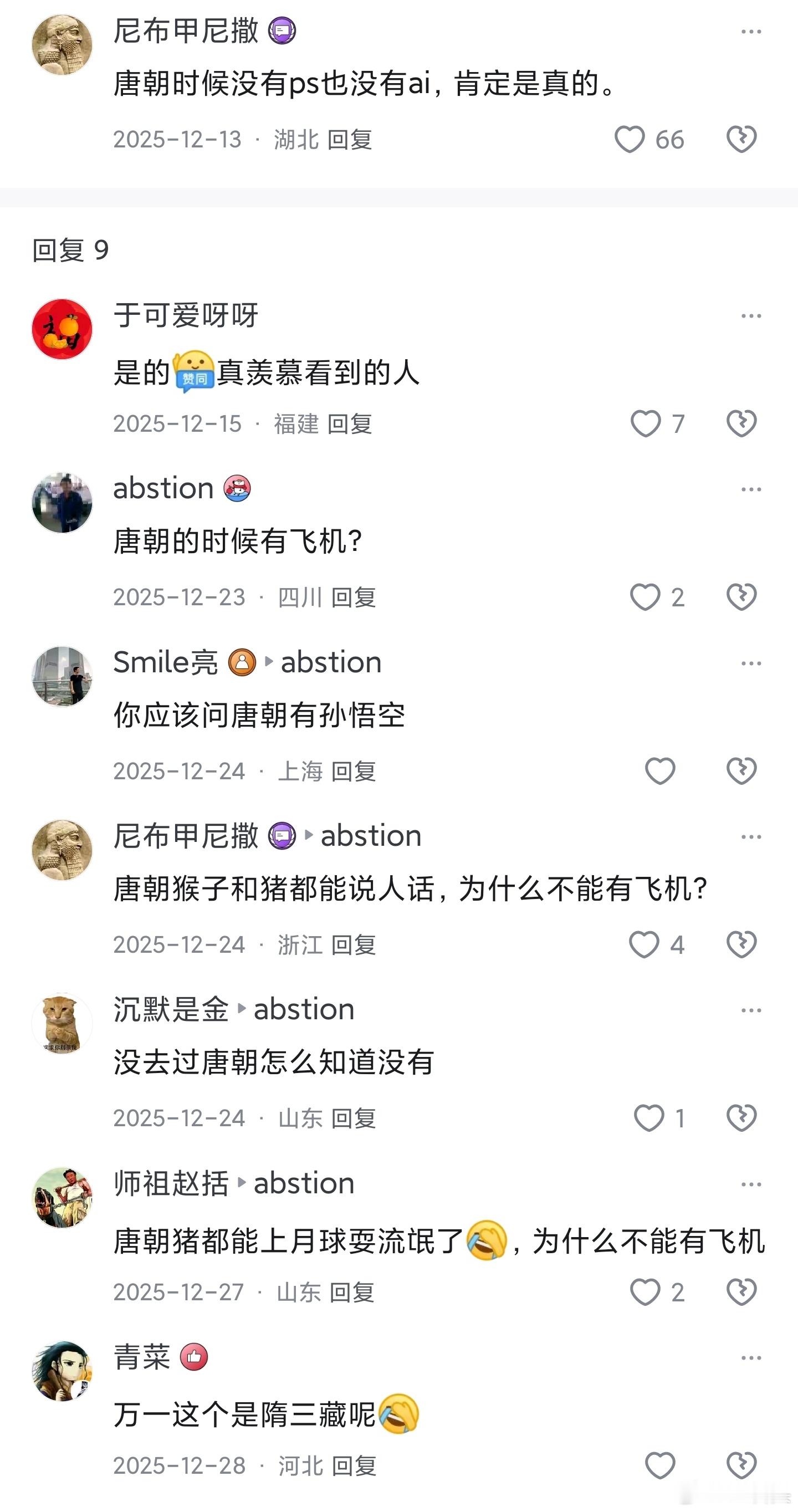 唐朝的猴子和猪都能说人话,为什么不能有飞机?另外,唐朝还有黑熊精和哮天犬,不过兽品都不太行。在《西游记》中第六回:猴王被二郎爷爷的细犬赶上,照腿肚子上咬了一口,又扯了一跌。猴王倒地上骂道:你这该死的东西,你不去妨家长,却来咬俺老孙。