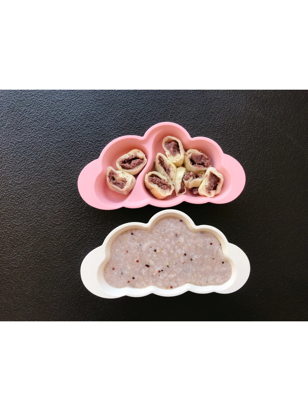 🌸三色粥:有藜麦米、大米、红米、紫米、多放了一个,月亮粥我基本都会打成碎给她煮粥,这样很细腻