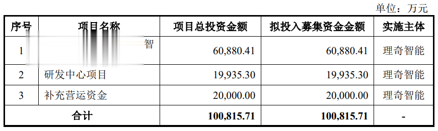 理奇智能发行募集资金扣除发行费用后,拟有序投资如下项目: