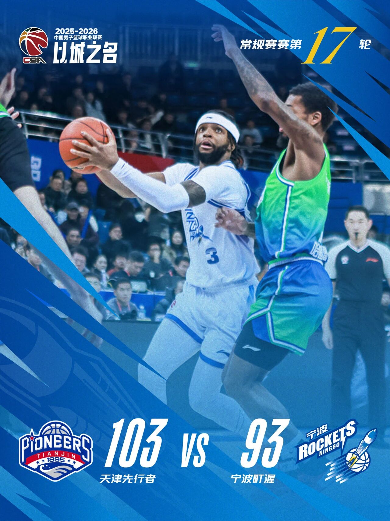 配文:1月20日,CBA2025-2026赛季常规赛第17轮,宁波町渥客场93:103不敌天津先行者。