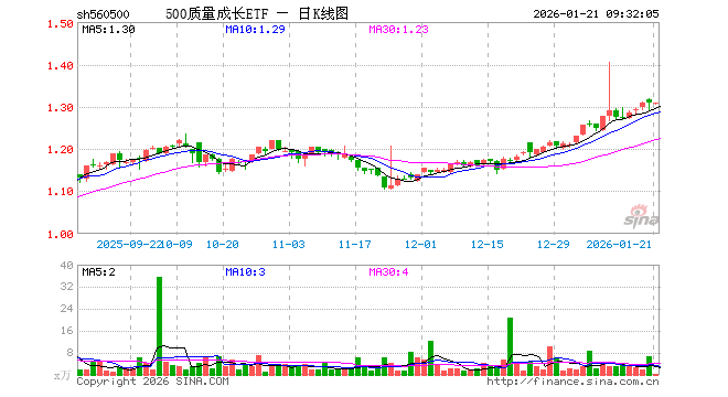 500质量成长ETF(560500)业绩比较基准为中证500质量成长指数收益率,管理人为鹏扬基金管理有限公司,基金经理为施红俊,成立(2021-08-04)以来回报为30.90%,近一个月回报为10.66%。